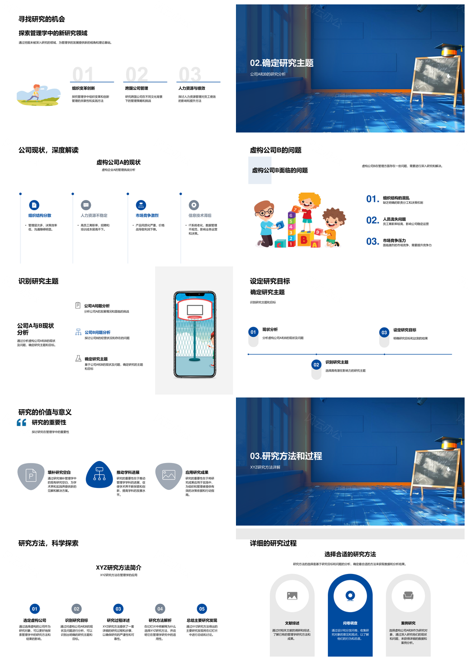 2025管理学答辩虚构公司AB研究挑战机会XYZ方法结果PPT模板