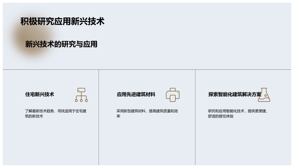 这是一张住宅建筑市场趋势创新策略新兴技术发布会PPT模板,包含住宅建筑、市场趋势、创新策略、新兴技术、发布会等主题内容,也可用作住宅建筑市场趋势、建筑市场趋势创新、市场趋势创新策略、创新策略新兴技术、策略新兴技术发布会、住宅建筑市场、建筑市场趋势、市场趋势创新、趋势创新策略、策略新兴技术、新兴技术发布会、住宅建筑、建筑市场、市场趋势、趋势创新等PPT场景使用。 风云办公提供的住宅建筑市场趋势创新策略新兴技术发布会PPT模板,下载格式为pptx,一共19页,作品中文字及图均可以修改和编辑,图片更改请在作品中右键图片并更换,文字修改请直接点击文字进行修改。