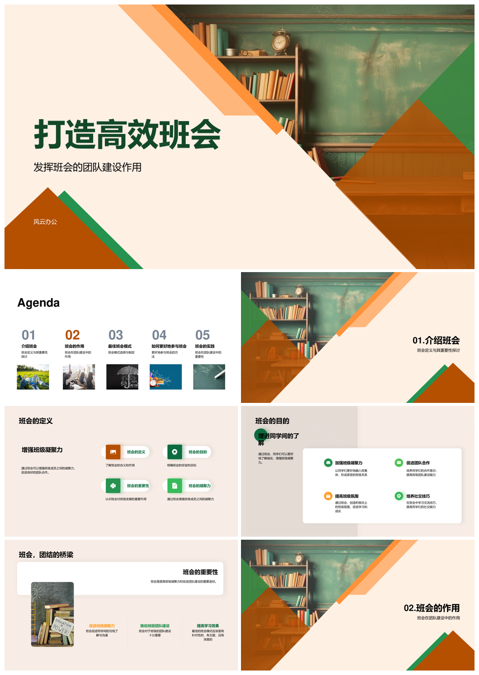 高效班会凝聚团队促进交流共建模式PPT模板推荐