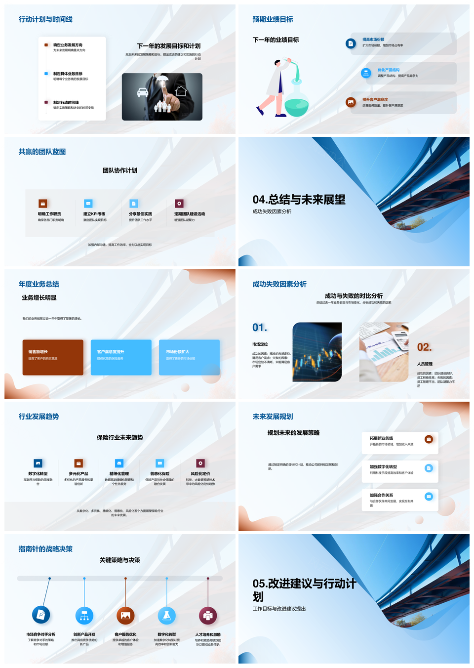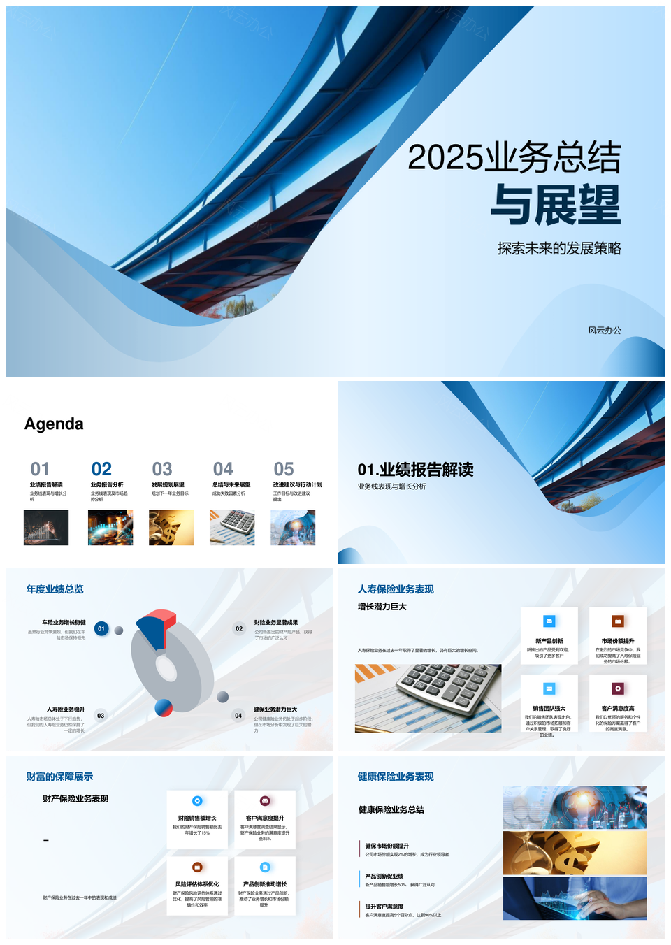 2025保险业务总结展望及竞品市场策略PPT模板推荐