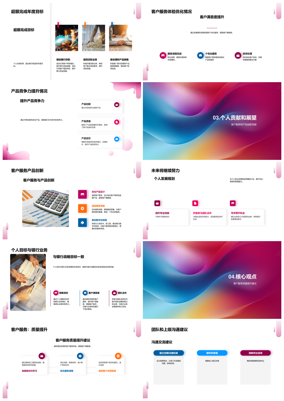 这是一张银行个人年度总结计划继续努力渐启新程PPT模板,包含银行、个人、年度、总结、计划、继续努力、渐启新程等主题内容,也可用作银行个人年度总结计划、个人年度总结计划继续、年度总结计划继续努力、总结计划继续努力渐启、计划继续努力渐启新程、继续努力渐启新程、银行个人年度总结、个人年度总结计划、年度总结计划继续、总结计划继续努力、计划继续努力渐启、继续努力渐启、努力渐启新程、银行个人年度、个人年度总结等PPT场景使用。 风云办公提供的银行个人年度总结计划继续努力渐启新程PPT模板,下载格式为pptx,一共21页,作品中文字及图均可以修改和编辑,图片更改请在作品中右键图片并更换,文字修改请直接点击文字进行修改。