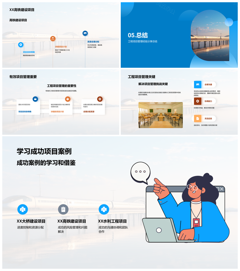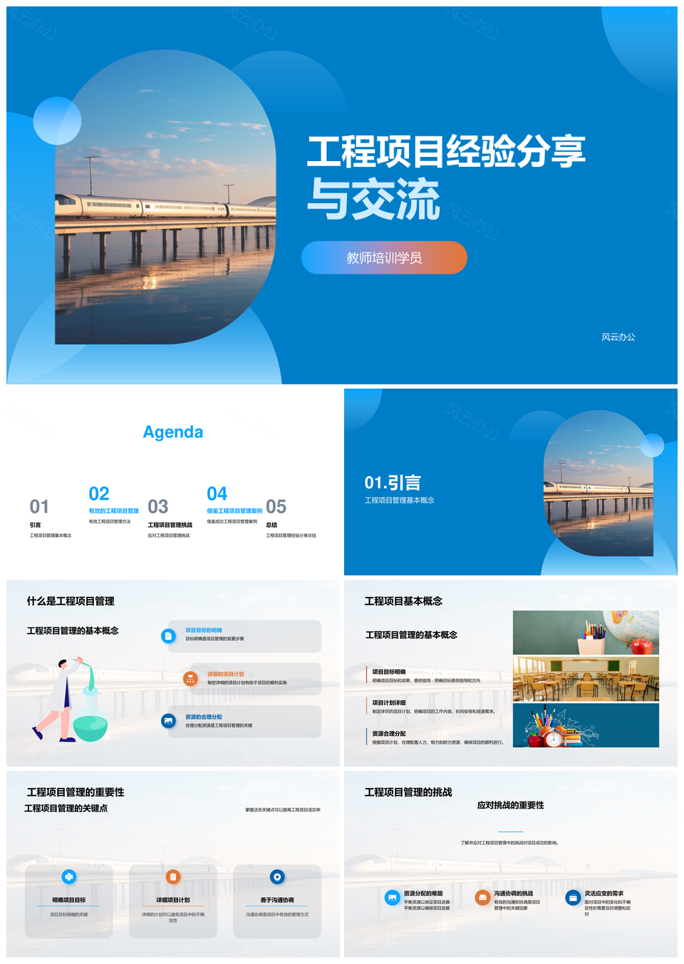 风云办公提供的教师工程管理培训桥梁高铁项目经验PPT模板,下载格式为pptx,一共23页,作品中文字及图均可以修改和编辑,图片更改请在作品中右键图片并更换,文字修改请直接点击文字进行修改。
