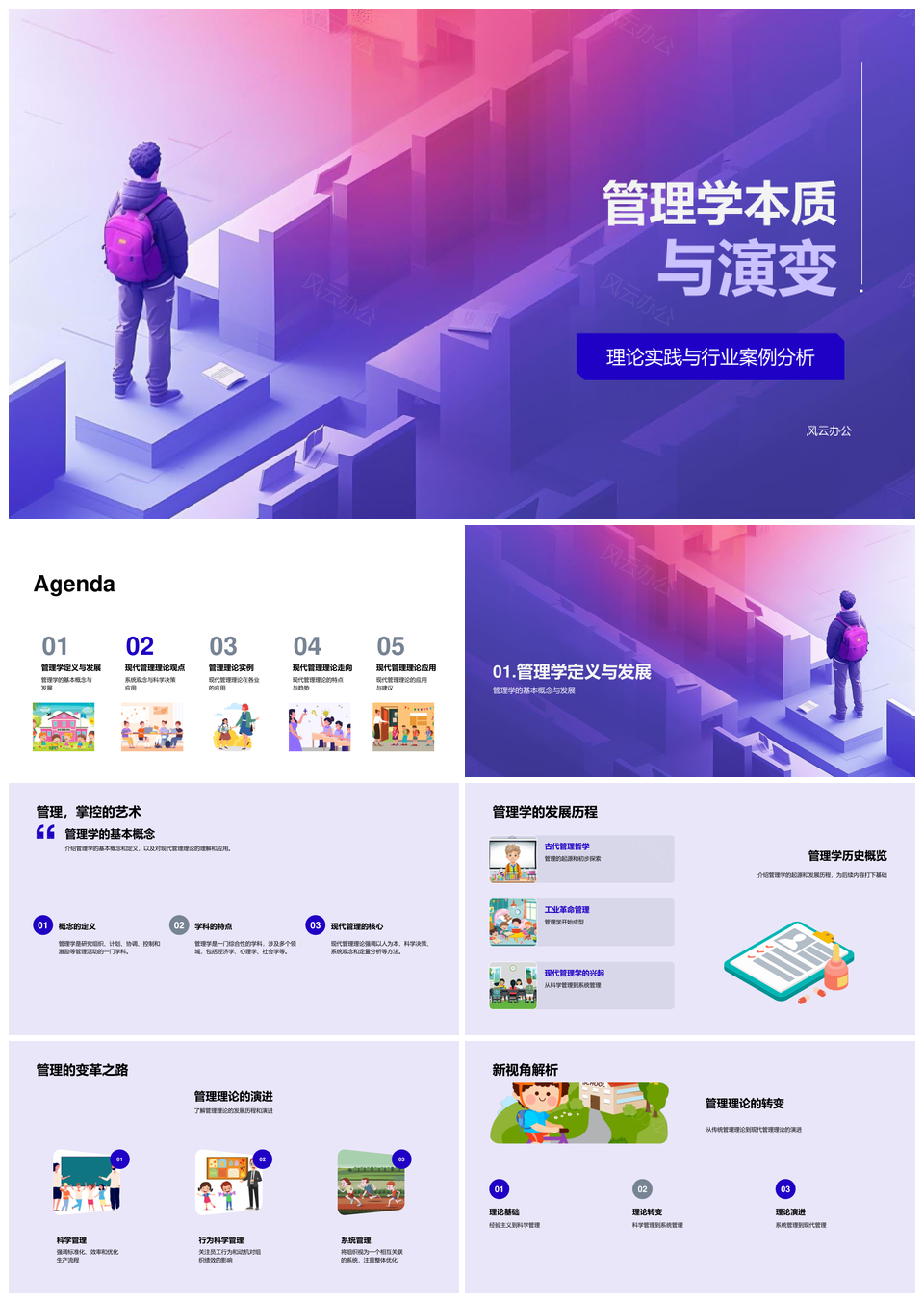管理学演变理论实践系统科学人本决策PPT模板推荐