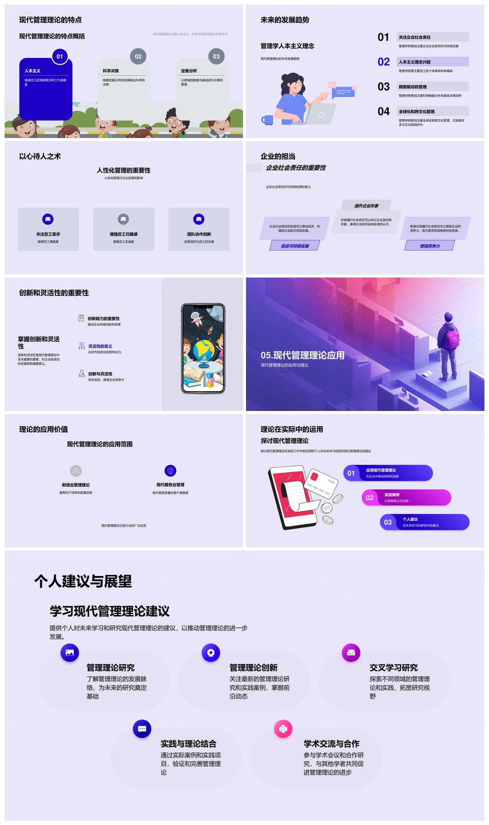 本套模板以浅紫为基调,结合灰紫渐变过渡与霓虹紫元素点缀,既保留商务场景的克制感,又通过低饱和度撞色体现视觉张力。3D立体图形精准构建模块化框架,参数化图标库支持自由组合数据模型,逻辑关系更清晰。所有版式均适配学术会议、企业年报、研发汇报等专业场景,配色经国际会议认证符合投影显色规范,矢量素材可无损适配4K分辨率输出。文字层级采用三阶灰度管理系统,满足40页以上长文档的内容编排需求,通过留白比例与网格系统保障阅读舒适度。