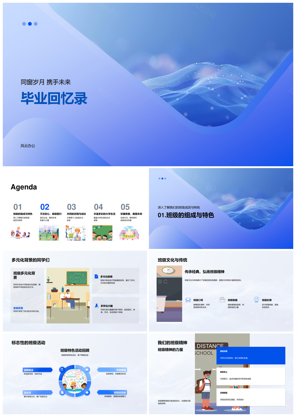 这是一张同窗岁月班级文化传统精神活动里程碑回忆录PPT模板,包含同窗岁月、班级文化、传统精神、活动、里程碑、回忆录等主题内容,也可用作同窗岁月班级文化、班级文化传统精神、文化传统精神活动、传统精神活动里程碑、精神活动里程碑回忆录、班级文化传统、文化传统精神、传统精神活动、精神活动里程碑、活动里程碑回忆录、同窗岁月、班级文化、文化传统、传统精神、精神活动等PPT场景使用。 风云办公提供的同窗岁月班级文化传统精神活动里程碑回忆录PPT模板,下载格式为pptx,一共28页,作品中文字及图均可以修改和编辑,图片更改请在作品中右键图片并更换,文字修改请直接点击文字进行修改。