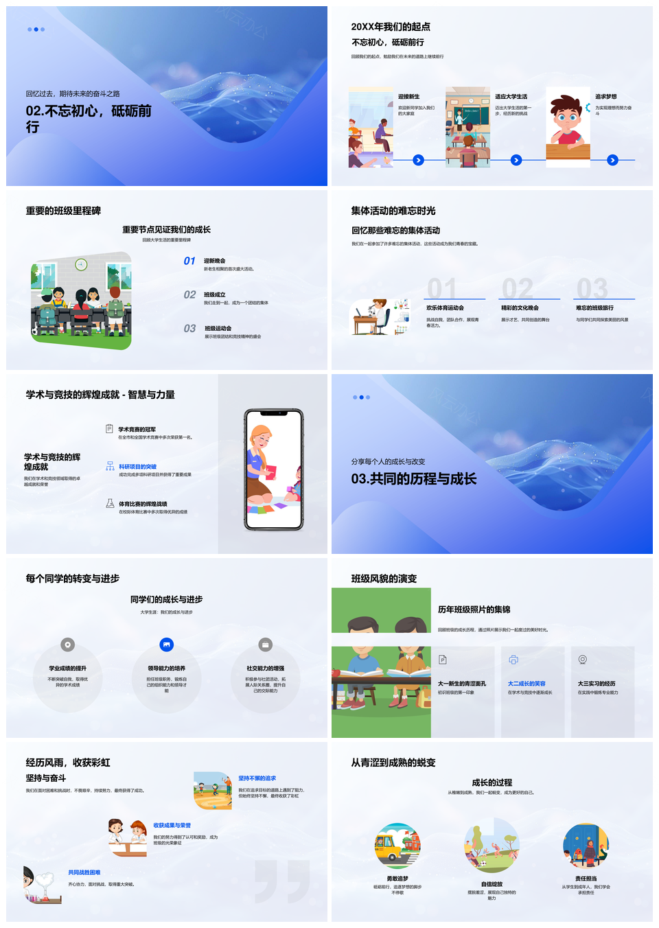 同窗岁月班级文化传统精神活动里程碑回忆录PPT模板推荐