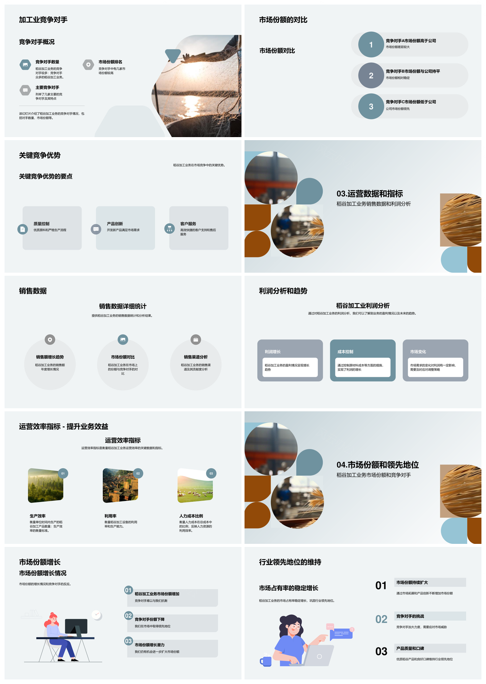 这是一张稻谷加工业务发展历程年中成就竞争总结PPT模板,包含稻谷加工、业务、发展、历程、年中、成就、竞争、总结等主题内容,也可用作稻谷加工业务发展、加工业务发展历程、业务发展历程年中、发展历程年中成就、历程年中成就竞争、年中成就竞争总结、稻谷加工业务、加工业务发展、业务发展历程、发展历程成就、历程年中成就、年中成就竞争、成就竞争总结、稻谷加工、加工业务、业务发展等PPT场景使用。 风云办公提供的稻谷加工业务发展历程年中成就竞争总结PPT模板,下载格式为pptx,一共31页,作品中文字及图均可以修改和编辑,图片更改请在作品中右键图片并更换,文字修改请直接点击文字进行修改。