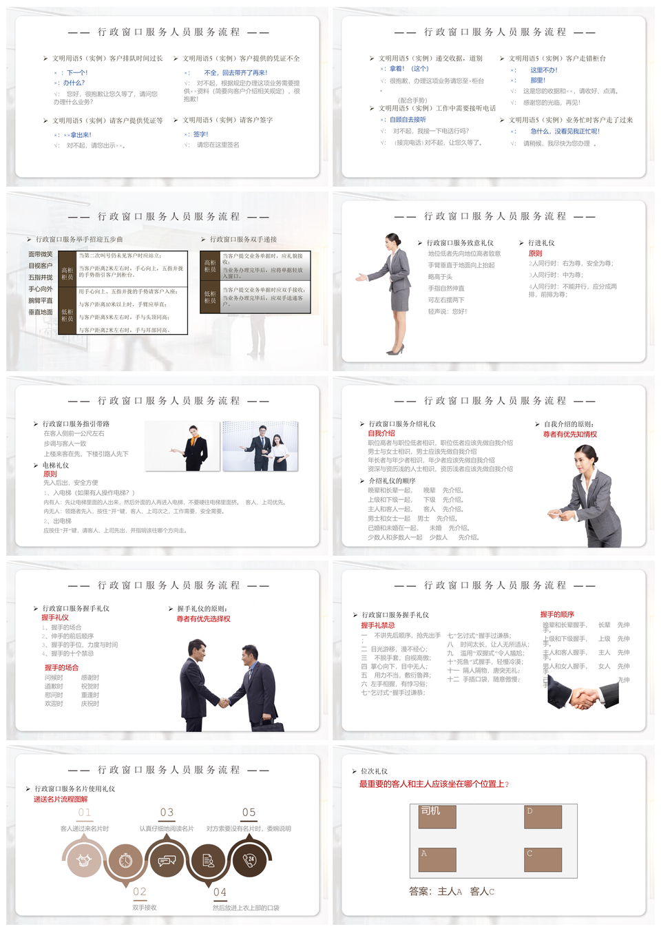 这是一张2025商务行政窗口服务礼仪培训课件行政法律公文总结PPT模板,包含2025、商务、行政、窗口、服务、礼仪、培训、课件、行政法律、公文、总结等主题内容,也可用作2025商务行政窗口服务礼仪、商务行政窗口服务礼仪培训课件、行政窗口服务礼仪培训课件行政法律、服务礼仪培训课件行政法律公文总结、公文总结2025商务行政窗口、商务行政窗口服务礼仪、行政窗口服务礼仪培训、服务礼仪培训课件、培训课件行政法律、行政法律公文总结、2025商务行政窗口、商务行政窗口、行政窗口服务、服务礼仪、培训课件等PPT场景使用。 风云办公提供的2025商务行政窗口服务礼仪培训课件行政法律公文总结PPT模板,下载格式为pptx,一共48页,作品中文字及图均可以修改和编辑,图片更改请在作品中右键图片并更换,文字修改请直接点击文字进行修改。