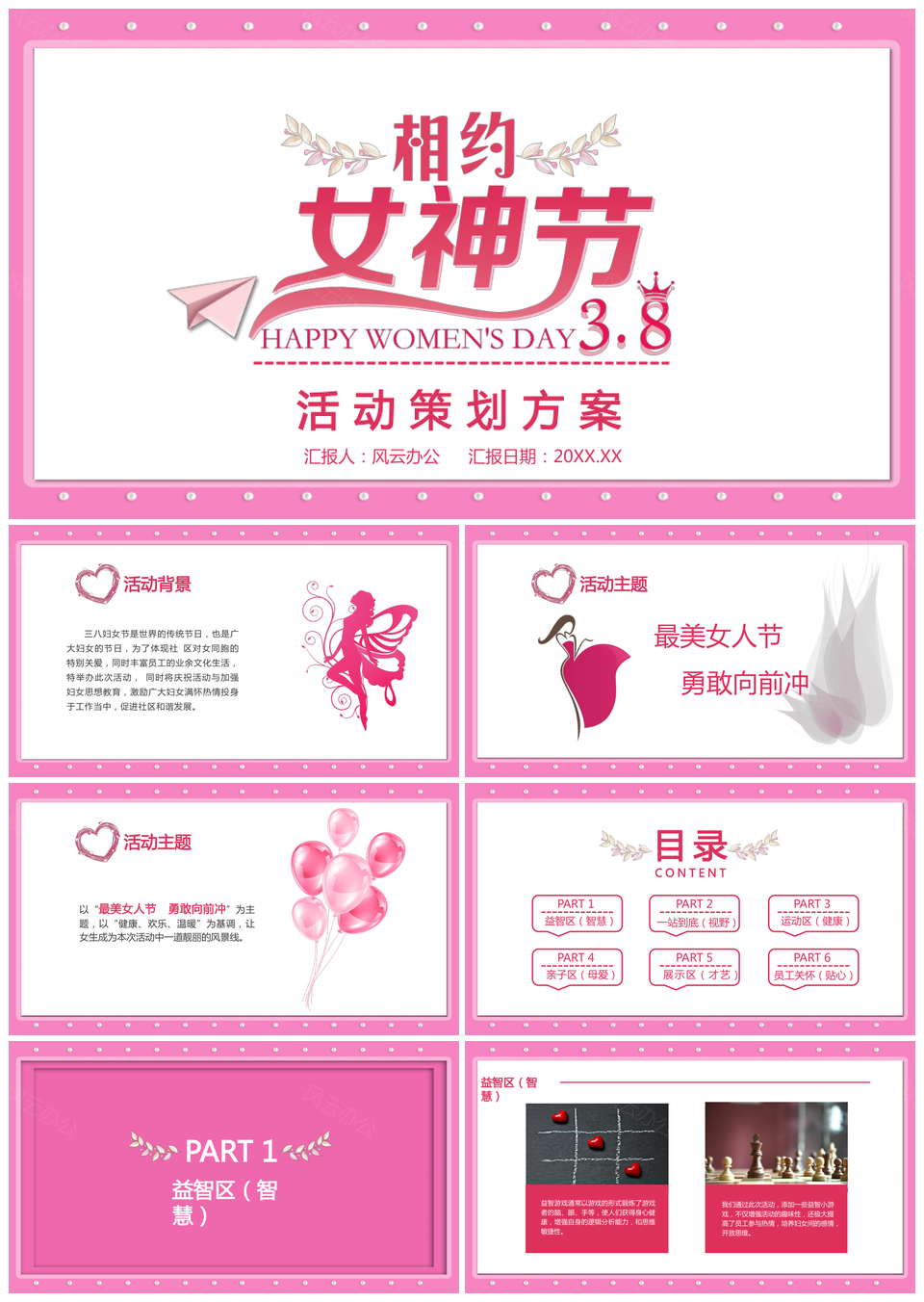 粉色妇女节女神节38活动温馨浪漫策划方案PPT模板