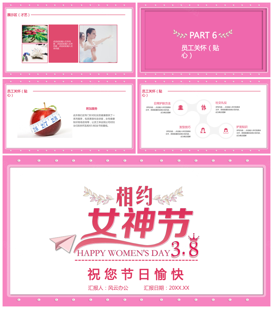 粉色三八妇女节浪漫温馨女神节主题活动创意清新通用PPT模板