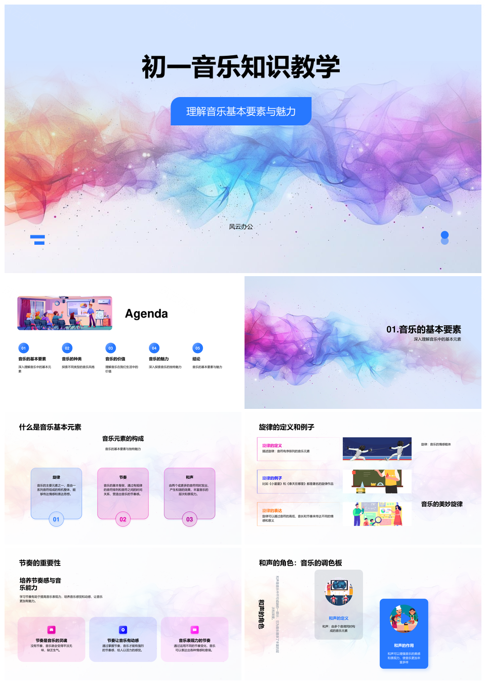 风云办公提供的初一音乐基本要素与种类教学PPT模板,下载格式为pptx,一共26页,作品中文字及图均可以修改和编辑,图片更改请在作品中右键图片并更换,文字修改请直接点击文字进行修改。