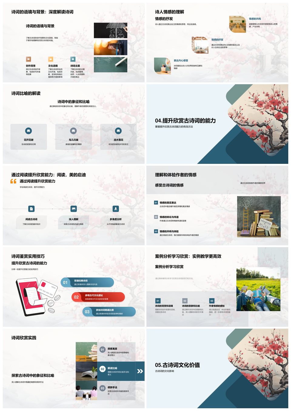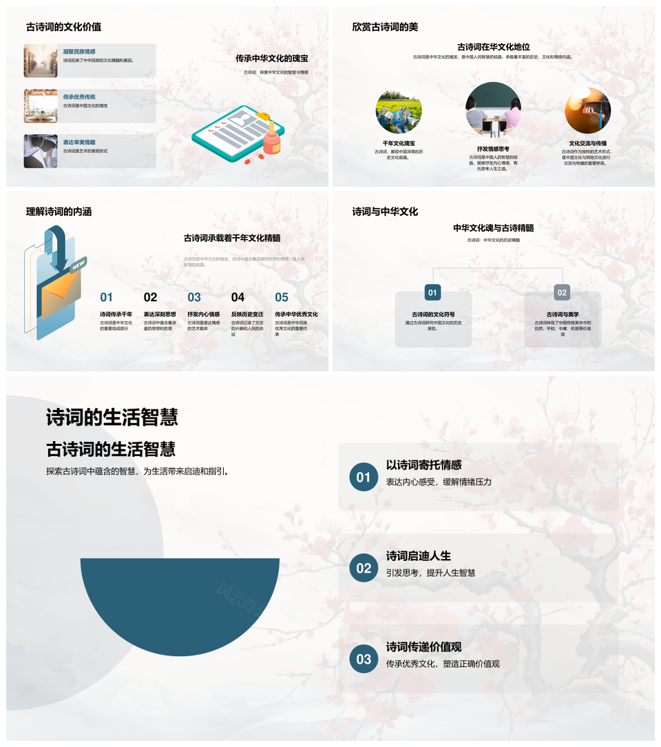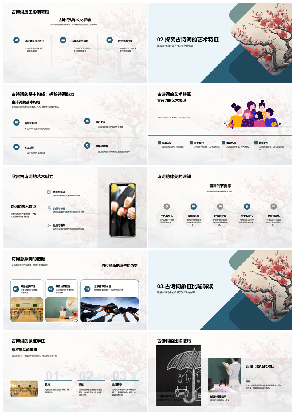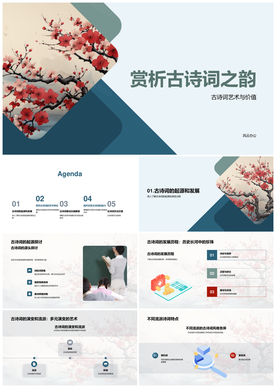 风云办公提供的古诗词艺术特色与历史流变探析PPT模板,下载格式为pptx,一共33页,作品中文字及图均可以修改和编辑,图片更改请在作品中右键图片并更换,文字修改请直接点击文字进行修改。