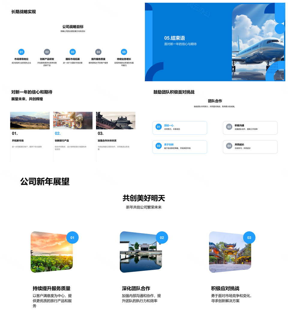 这是一张新年度旅游行业策划展望与全球发展方向PPT模板,包含新年度、旅游行业、策划、展望、全球、发展方向等主题内容,也可用作新年度旅游行业策划、新年度旅游行业展望、新年度旅游策划展望、新年度旅游全球发展方向、旅游行业策划展望、旅游行业全球发展方向、新年度旅游行业、新年度旅游策划、新年度策划展望、旅游行业策划、旅游策划展望、旅游全球发展方向、新年度旅游、旅游行业、全球发展方向等PPT场景使用。 风云办公提供的新年度旅游行业策划展望与全球发展方向PPT模板,下载格式为pptx,一共23页,作品中文字及图均可以修改和编辑,图片更改请在作品中右键图片并更换,文字修改请直接点击文字进行修改。