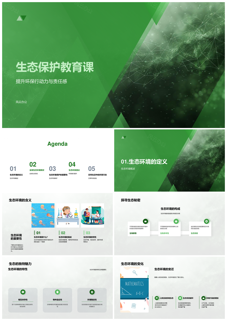 风云办公提供的生态保护教育责任行动守护全球生态PPT模板,下载格式为pptx,一共33页,作品中文字及图均可以修改和编辑,图片更改请在作品中右键图片并更换,文字修改请直接点击文字进行修改。