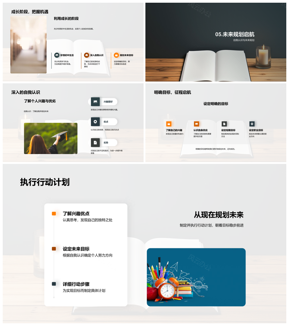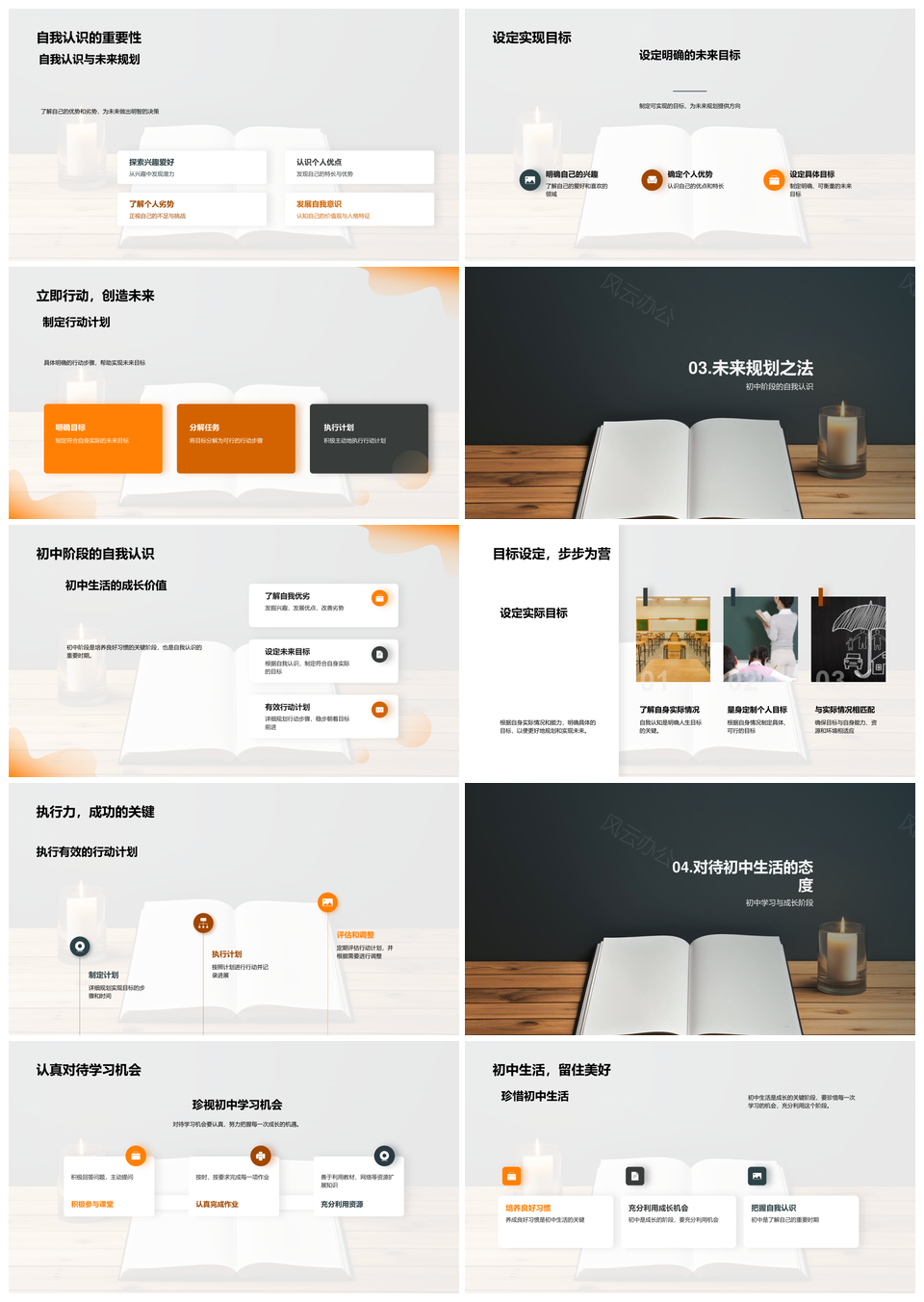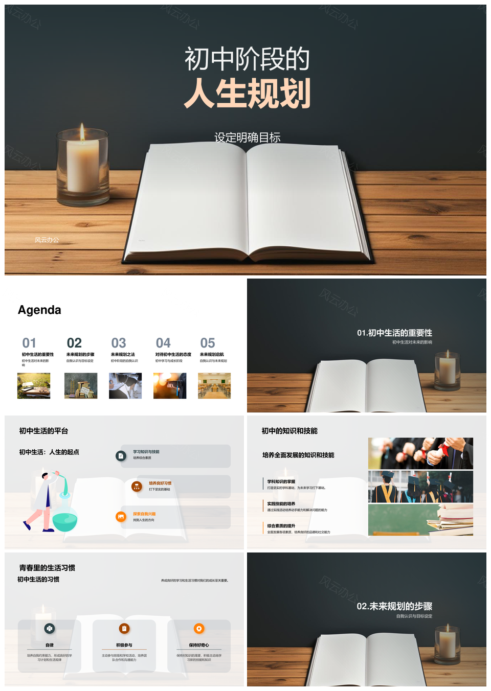 风云办公提供的初中生目标规划未来行动知识习惯养成PPT模板,下载格式为pptx,一共23页,作品中文字及图均可以修改和编辑,图片更改请在作品中右键图片并更换,文字修改请直接点击文字进行修改。