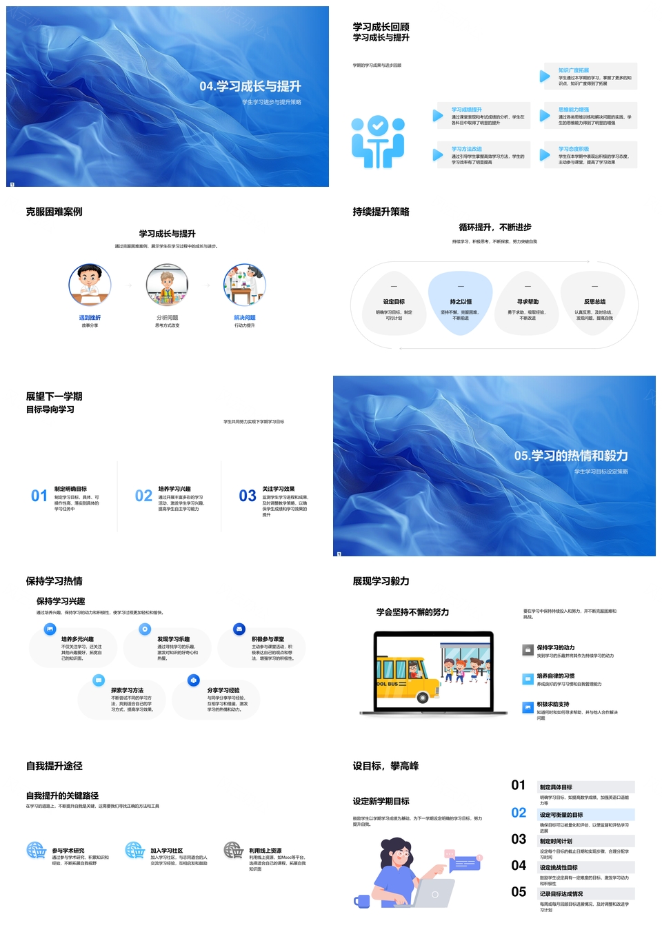 风云办公提供的学期学习总结进步反馈改进建议PPT模板,下载格式为pptx,一共28页,作品中文字及图均可以修改和编辑,图片更改请在作品中右键图片并更换,文字修改请直接点击文字进行修改。