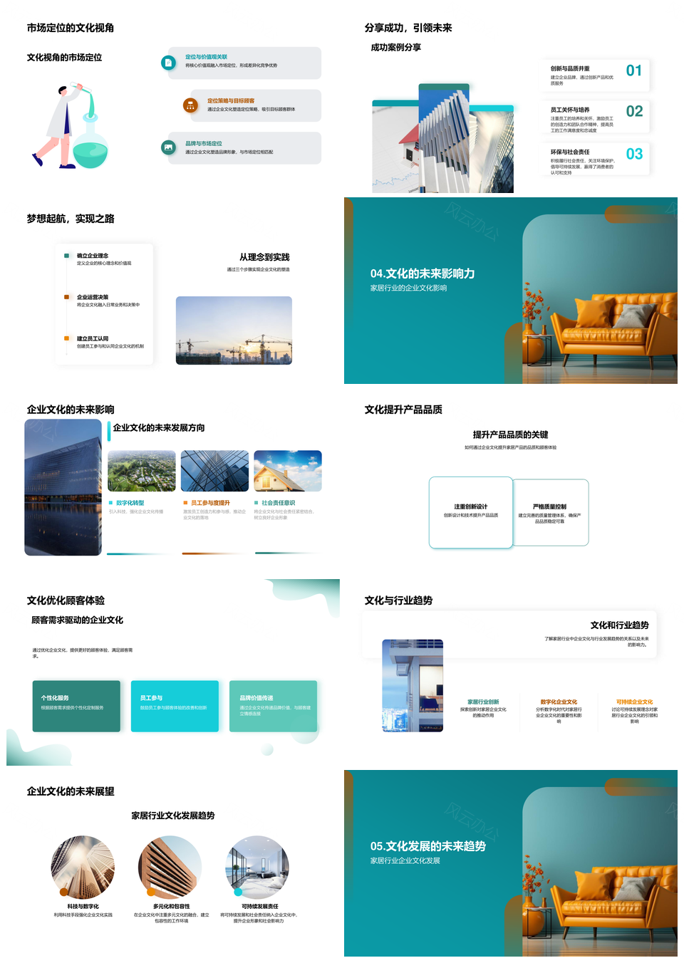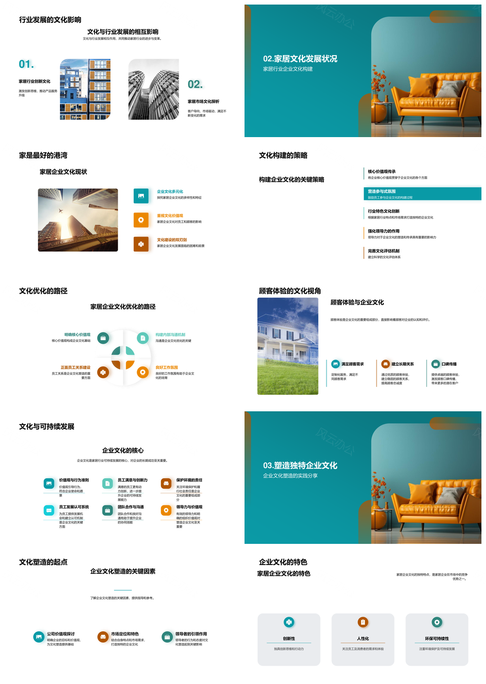 风云办公提供的家居企业文化塑造与市场可持续发展PPT模板,下载格式为pptx,一共33页,作品中文字及图均可以修改和编辑,图片更改请在作品中右键图片并更换,文字修改请直接点击文字进行修改。