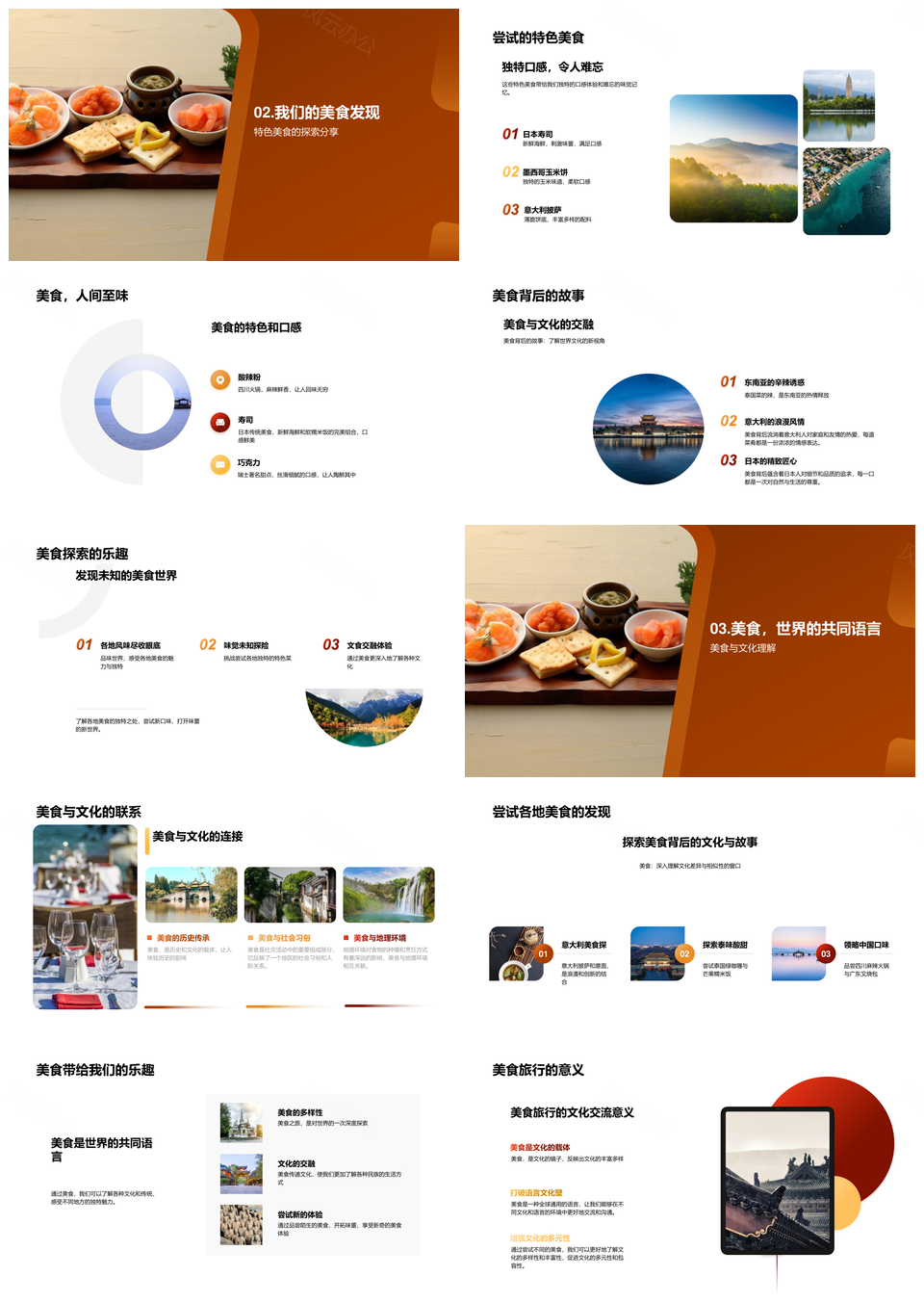 这是一张味觉旅行寻味异国品文化美食探秘PPT模板,包含味觉旅行、寻味、异国、品文化、美食、探秘等主题内容,也可用作味觉旅行寻味异国文化、味觉旅行寻味异国美食、旅行寻味异国文化美食、寻味异国文化美食探秘、味觉旅行异国文化美食、旅行异国文化美食探秘、味觉寻味异国美食探秘、味觉旅行文化美食探秘、寻味异国美食探秘、旅行文化美食探秘、异国文化美食探秘、味觉旅行寻味异国、味觉旅行文化美食、旅行异国美食探秘、寻味文化美食探秘等PPT场景使用。