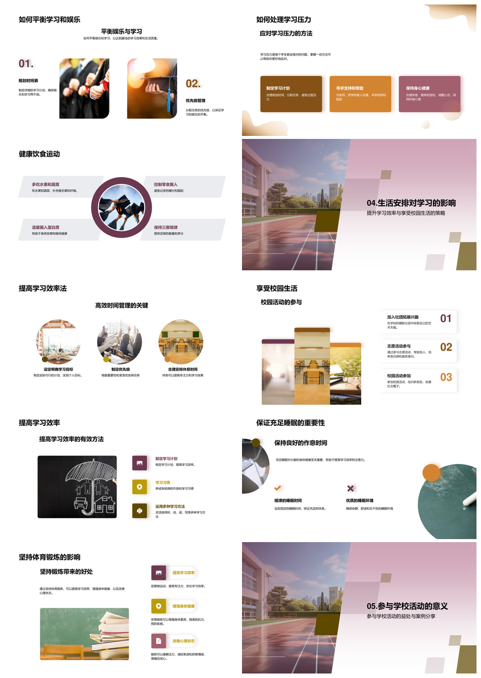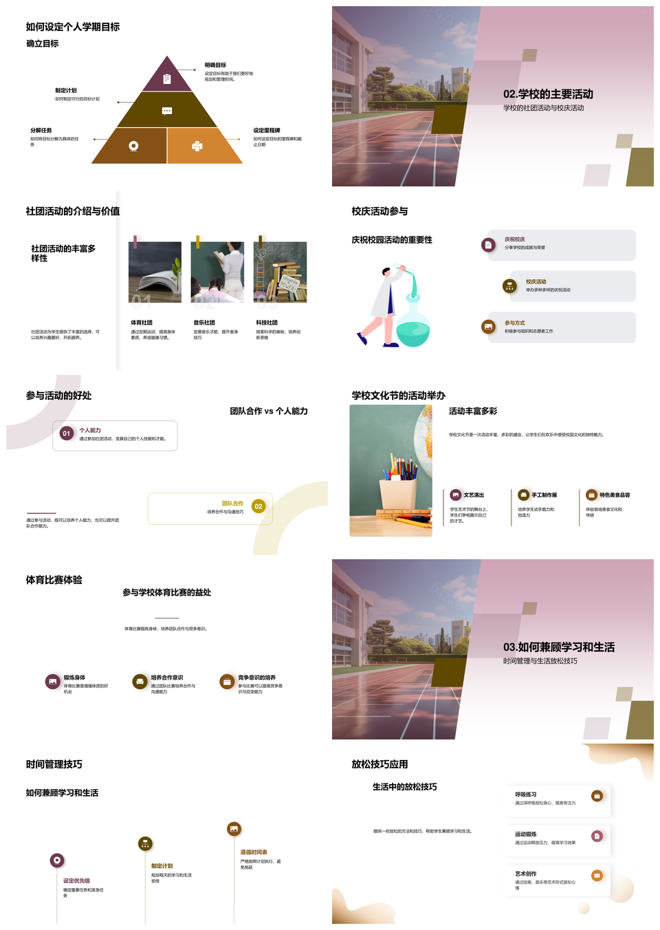 新学期计划平衡课程社团校庆高效学习放松技巧PPT模板推荐