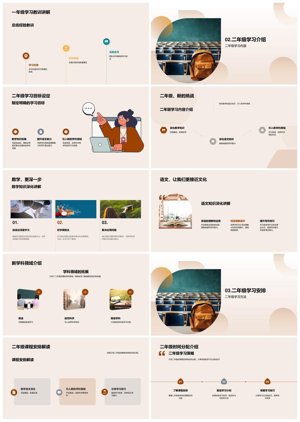 这是一张一升二学习内容目标方法难点经验课程书包PPT模板,包含一升二、学习内容、目标、方法、难点、经验、课程、书包等主题内容,也可用作一升二学习内容目标方法、学习内容目标方法难点、目标方法难点经验课程、难点经验课程书包、一升二学习方法难点经验、学习内容课程目标方法、一升二难点经验课程书包、目标方法难点课程书包、一升二学习内容课程目标、学习内容目标经验课程、学习方法经验课程书包、一升二目标方法难点、学习内容方法难点经验、目标经验课程书包、学习内容目标方法等PPT场景使用。 风云办公提供的一升二学习内容目标方法难点经验课程书包PPT模板,下载格式为pptx,一共33页,作品中文字及图均可以修改和编辑,图片更改请在作品中右键图片并更换,文字修改请直接点击文字进行修改。
