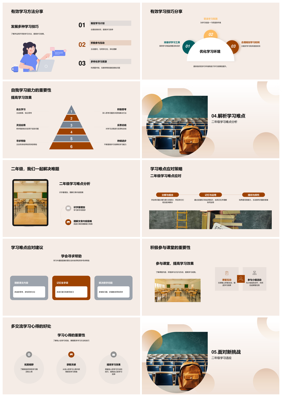 一升二学习内容目标方法难点经验课程书包PPT模板推荐
