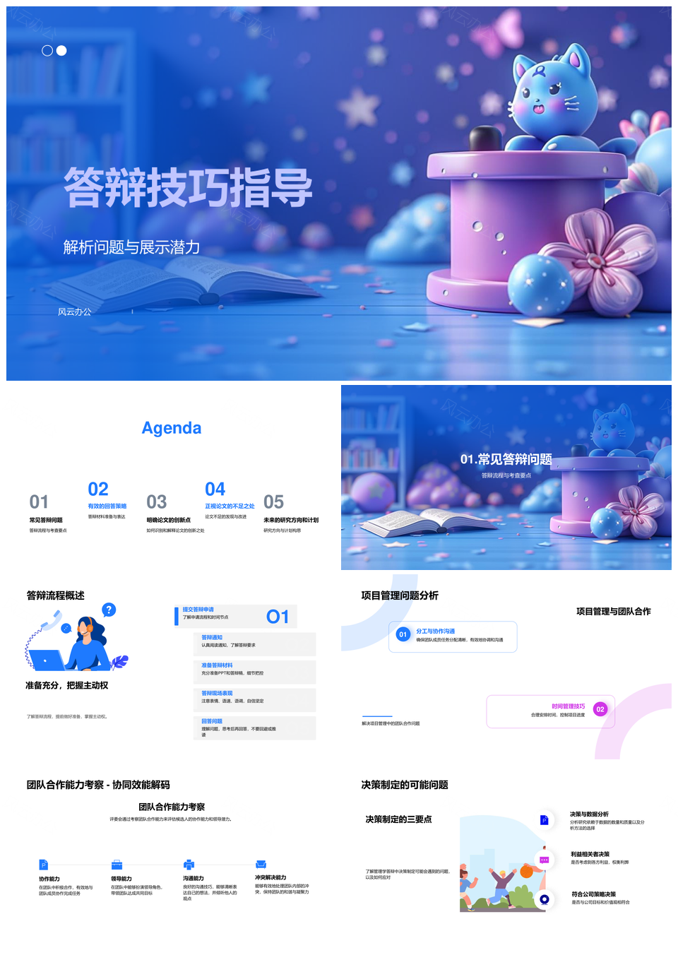 风云办公提供的管理学答辩技巧与团队决策创新思维PPT模板,下载格式为pptx,一共33页,作品中文字及图均可以修改和编辑,图片更改请在作品中右键图片并更换,文字修改请直接点击文字进行修改。