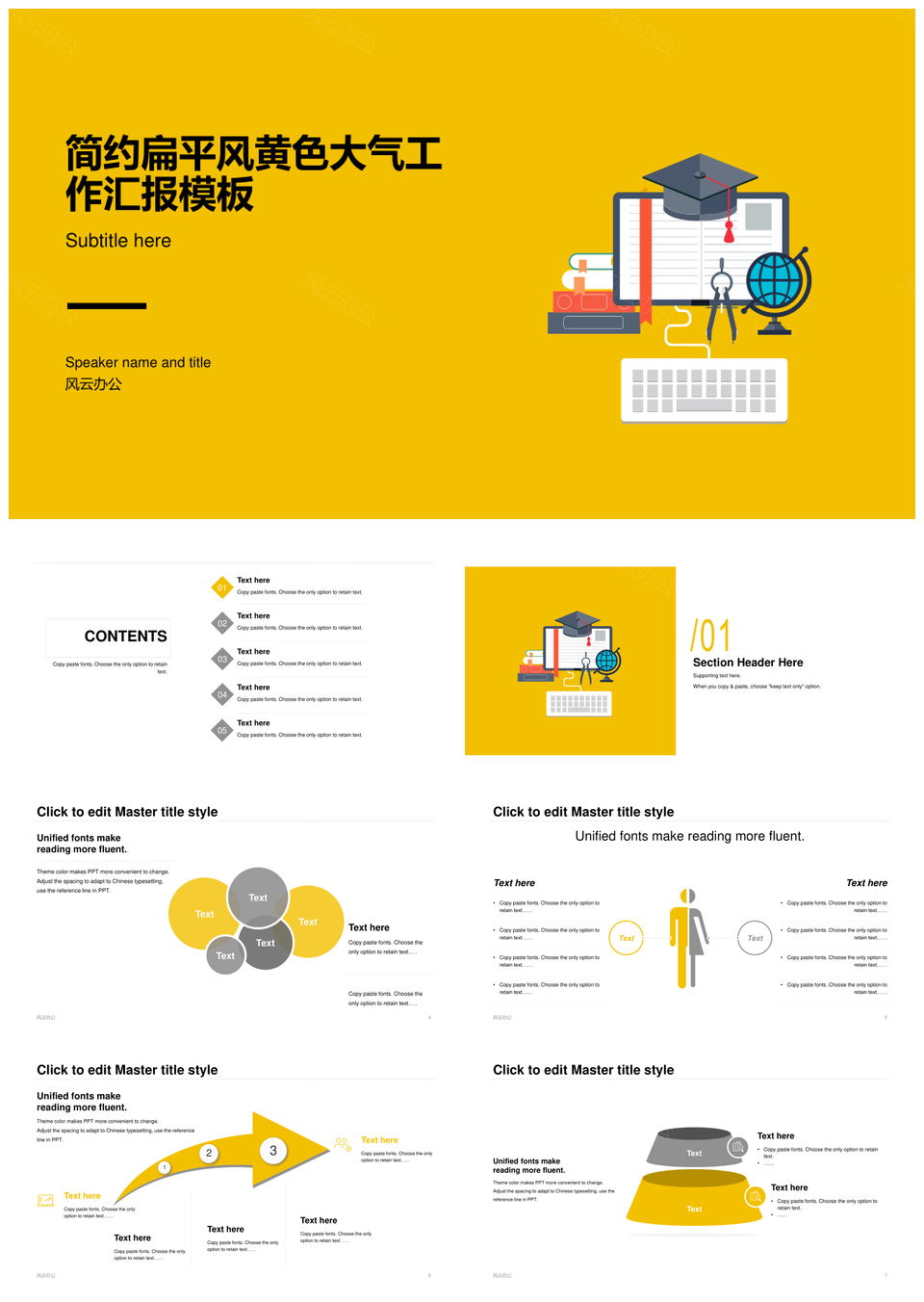 风云办公提供的黄色扁平风教育学术总结PPT插画,下载格式为pptx,一共32页,作品中文字及图均可以修改和编辑,图片更改请在作品中右键图片并更换,文字修改请直接点击文字进行修改。
