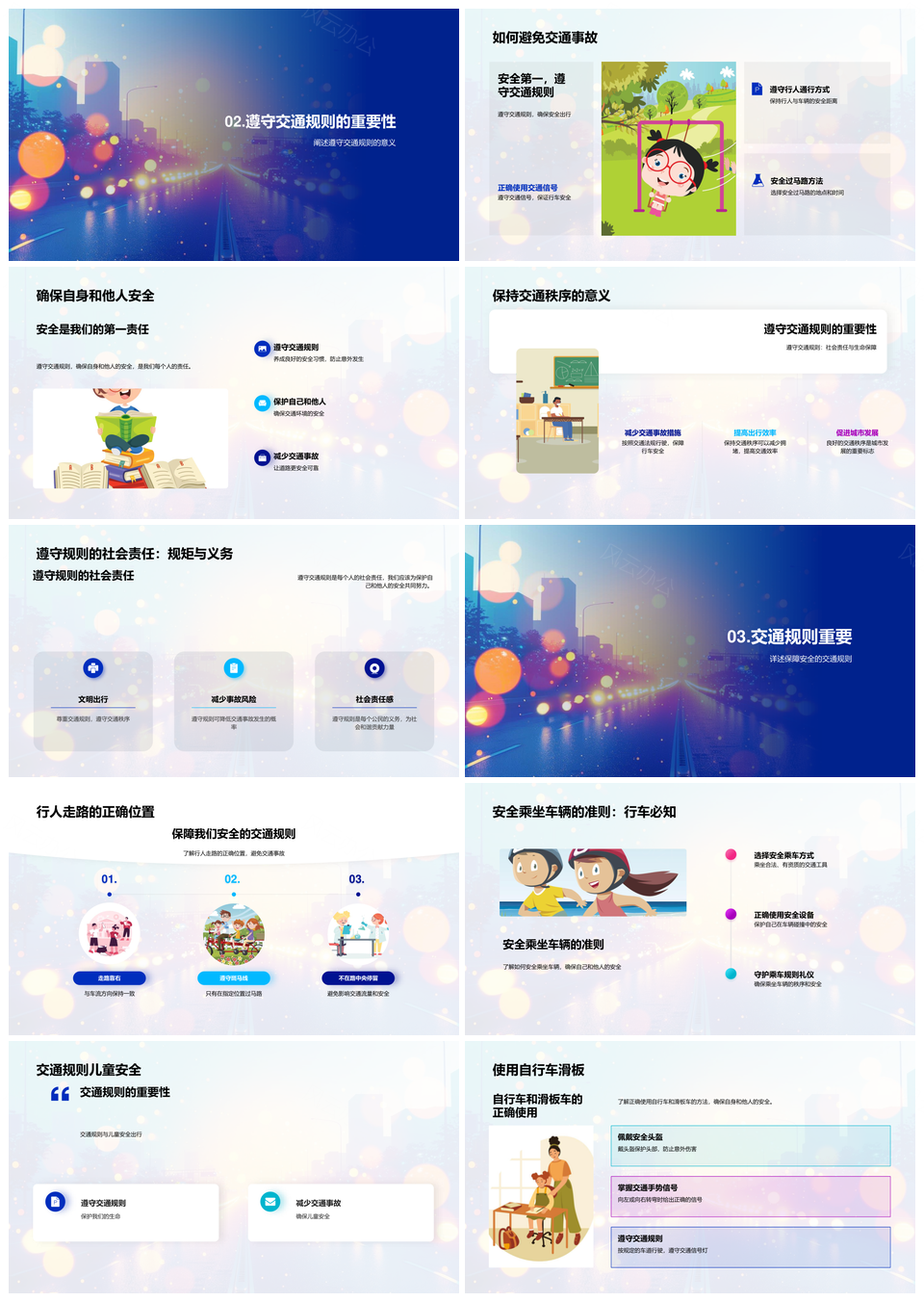 这是一张儿童交通安全交规信号标志过马路防事故护秩序PPT模板,包含儿童、交通安全、交规、信号、标志、过马路、防事故、护秩序等主题内容,也可用作儿童交通安全过马路、交通交规信号标志、安全交规信号标志、交规信号标志过马路、信号标志过马路防事故、儿童交通安全、交通交规信号、安全交规信号、交规信号标志、信号标志过马路、过马路防事故、防事故护秩序、儿童过马路、交通安全交规、交通信号标志等PPT场景使用。 风云办公提供的儿童交通安全交规信号标志过马路防事故护秩序PPT模板,下载格式为pptx,一共28页,作品中文字及图均可以修改和编辑,图片更改请在作品中右键图片并更换,文字修改请直接点击文字进行修改。