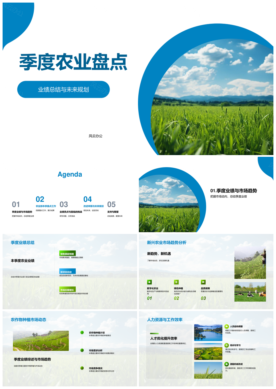 农业季度盘点总结规划人力技术合作市场趋势PPT模板推荐