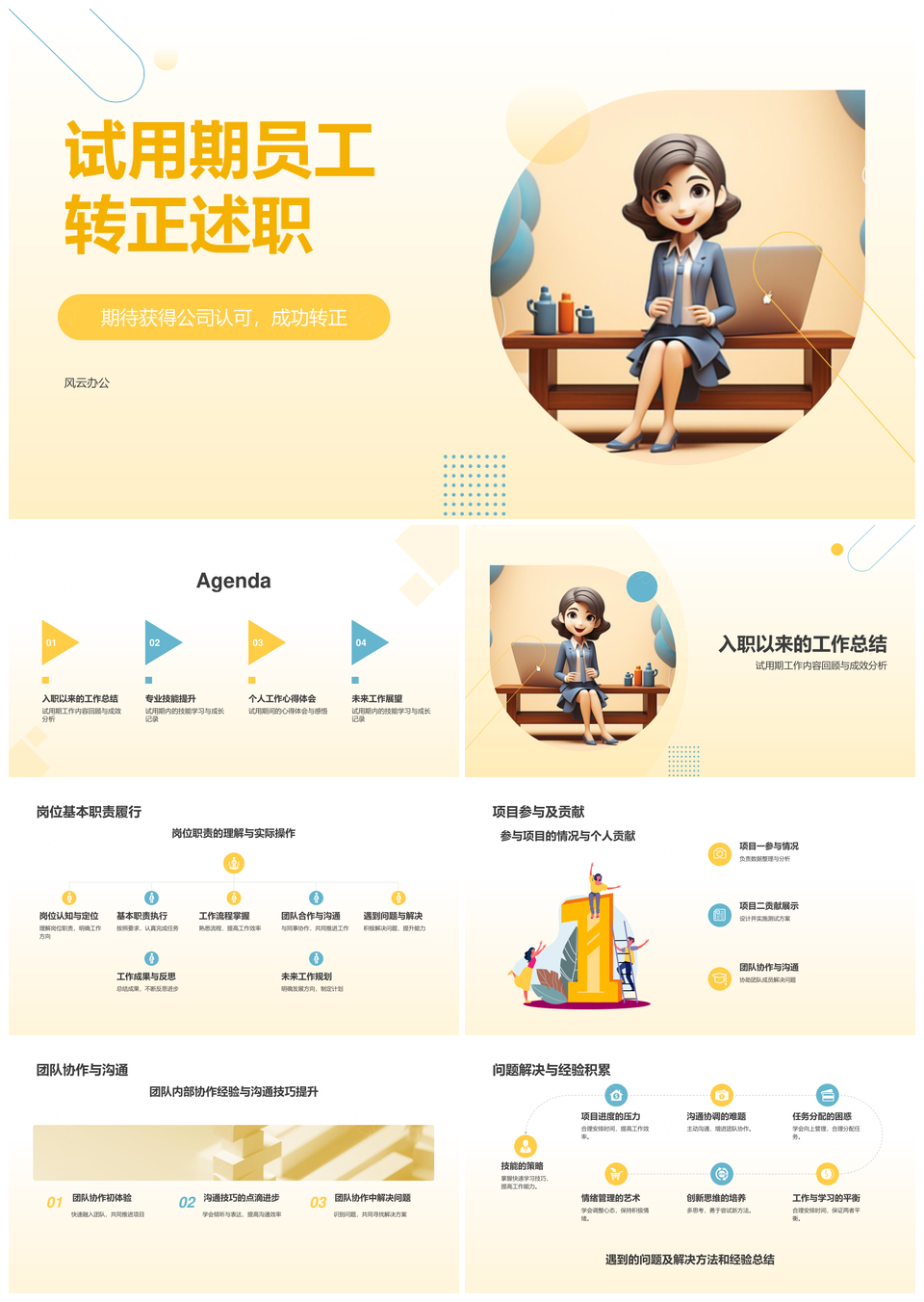 这是一张试用期转正述职成果评估团队协作职业发展展示PPT模板,包含试用期、转正、述职、成果、评估、团队、协作、职业、发展、展示等主题内容,也可用作试用期转正述职成果评估、试用期转正述职成果、转正述职成果评估、述职成果评估团队协作、成果评估团队协作职业发展、评估团队协作职业发展展示、团队协作职业发展展示、试用期转正述职评估、转正述职成果评估团队、述职成果评估团队协作职业发展、成果评估团队协作职业发展、评估团队协作职业发展、试用期转正述职、转正述职成果、述职成果评估、成果评估团队、评估团队协作、团队协作职业、职业发展展示等PPT场景使用。 风云办公提供的试用期转正述职成果评估团队协作职业发展展示PPT模板,下载格式为pptx,一共20页,作品中文字及图均可以修改和编辑,图片更改请在作品中右键图片并更换,文字修改请直接点击文字进行修改。