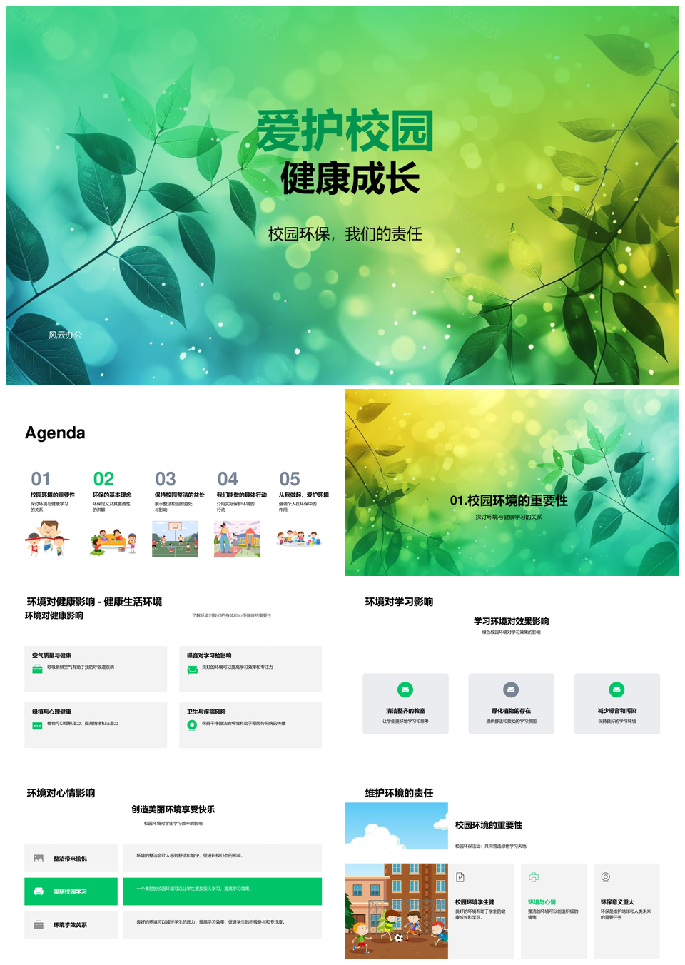 2025校园环保助健康可持续发展成长PPT模板推荐