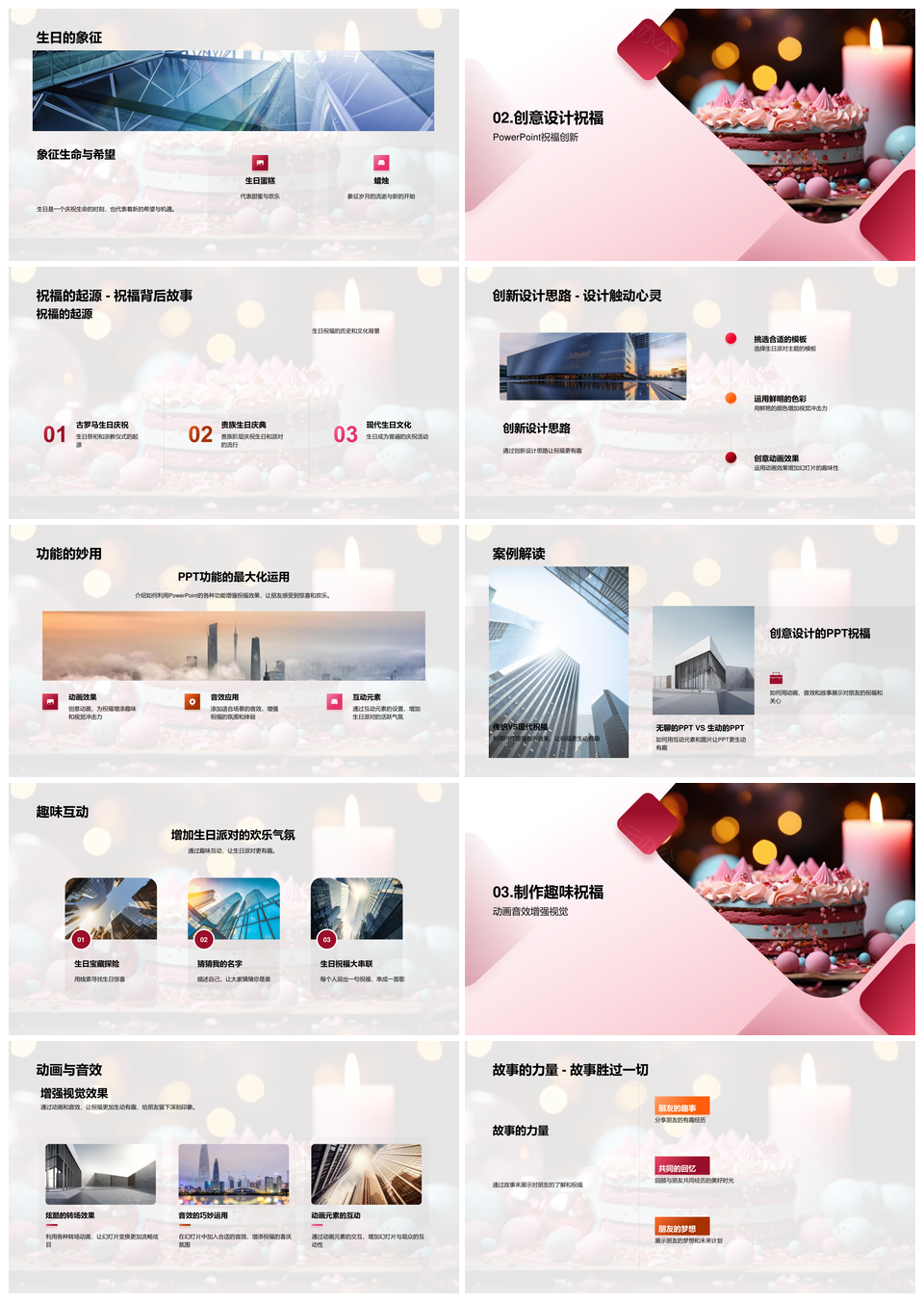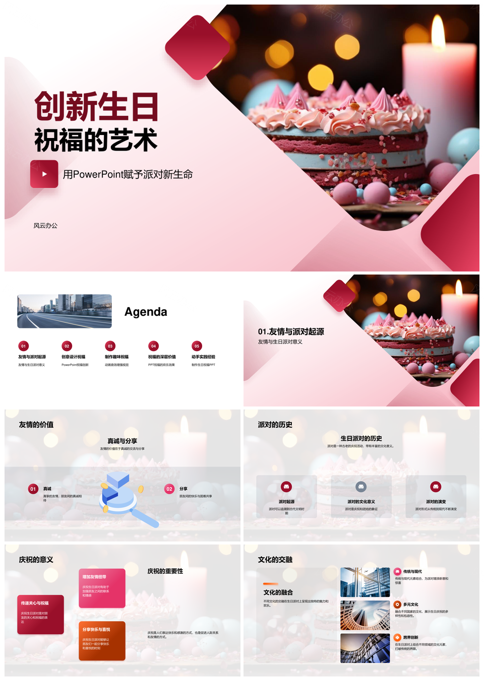 这是一张创意生日派对互动动画友情文化情感视觉蛋糕PPT模板,包含创意、生日派对、互动、动画、友情、文化、情感、视觉、蛋糕等主题内容,也可用作创意生日派对互动、生日派对互动动画、互动动画友情文化、动画友情文化情感、文化情感视觉蛋糕、创意生日派对、生日派对互动、派对互动动画、动画友情文化、文化情感视觉、视觉蛋糕创意生日、创意生日、生日派对、派对互动、互动动画等PPT场景使用。 风云办公提供的创意生日派对互动动画友情文化情感视觉蛋糕PPT模板,下载格式为pptx,一共33页,作品中文字及图均可以修改和编辑,图片更改请在作品中右键图片并更换,文字修改请直接点击文字进行修改。