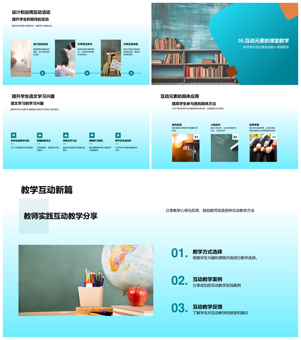 这是一张初中语文课堂互动策略提升参与学习效果PPT模板,包含初中语文课堂、互动策略、提升、参与、学习效果等主题内容,也可用作初中语文课堂互动、语文课堂互动策略、课堂互动策略提升、策略提升参与学习、提升参与学习效果、初中语文课堂、语文课堂互动、课堂互动策略、互动策略提升、策略提升参与、提升参与学习、参与学习效果、初中语文、语文课堂、课堂互动等PPT场景使用。 风云办公提供的初中语文课堂互动策略提升参与学习效果PPT模板,下载格式为pptx,一共23页,作品中文字及图均可以修改和编辑,图片更改请在作品中右键图片并更换,文字修改请直接点击文字进行修改。