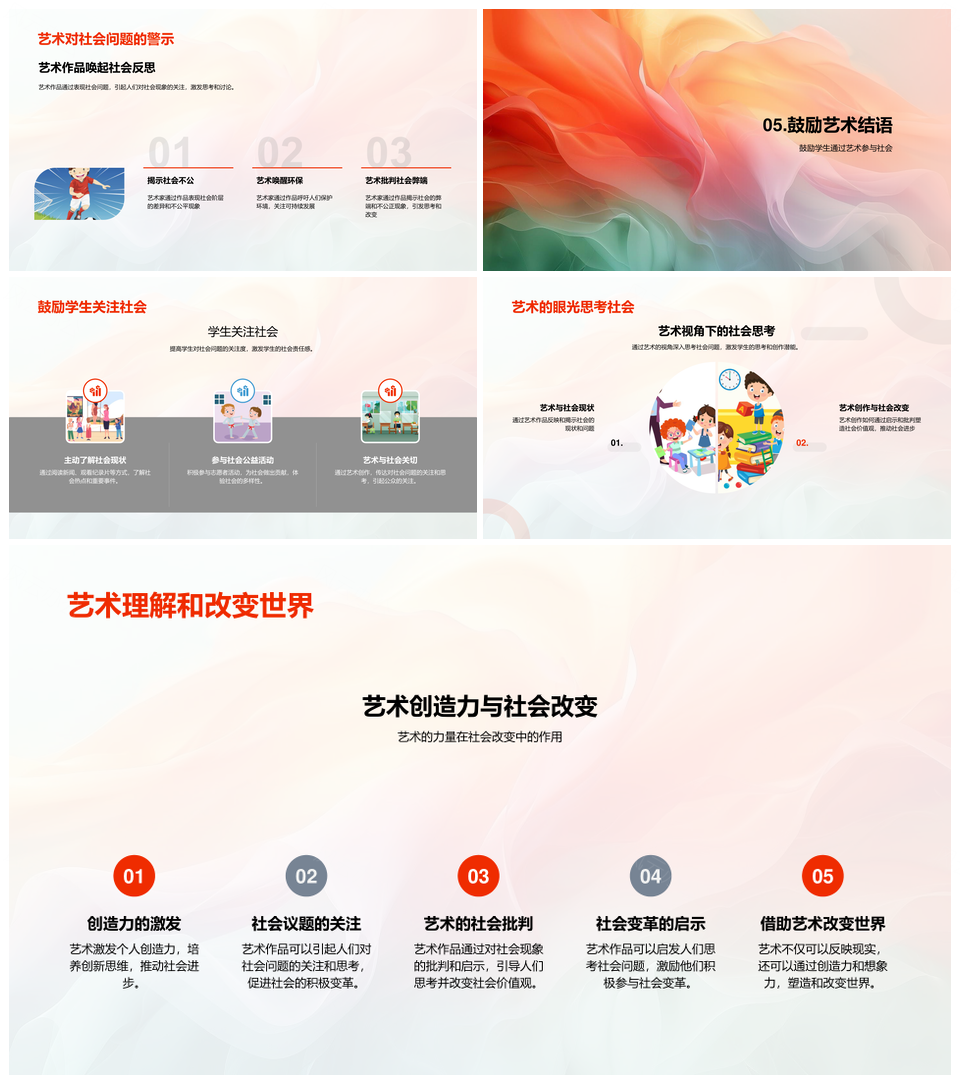 风云办公提供的高中艺术社会互动教学推动社会进步PPT模板,下载格式为pptx,一共23页,作品中文字及图均可以修改和编辑,图片更改请在作品中右键图片并更换,文字修改请直接点击文字进行修改。