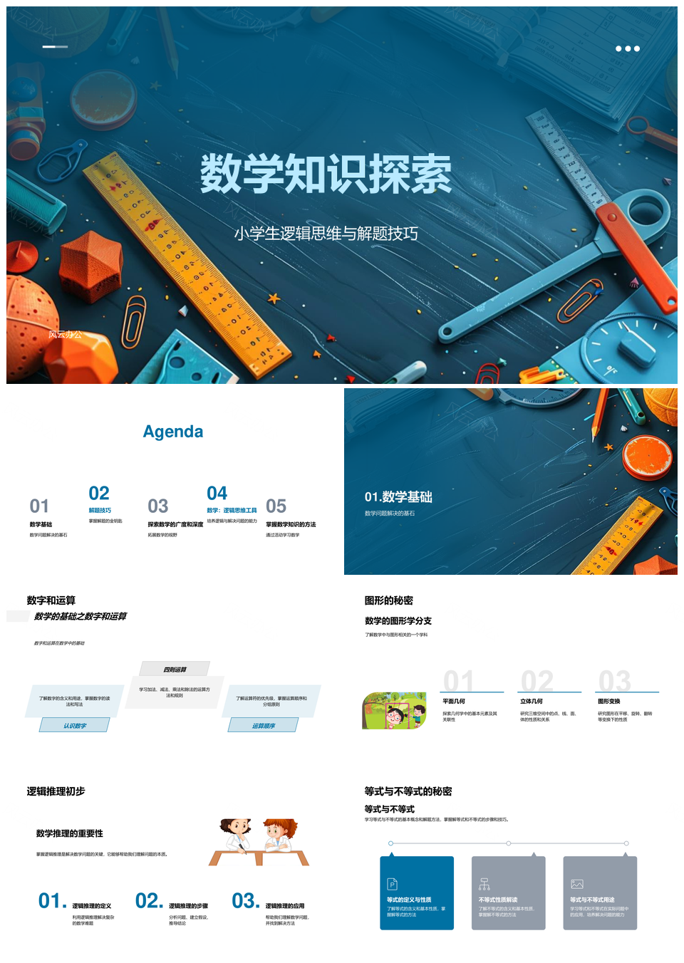 风云办公提供的小学生数学知识逻辑思维解题方法课件,下载格式为pptx,一共33页,作品中文字及图均可以修改和编辑,图片更改请在作品中右键图片并更换,文字修改请直接点击文字进行修改。