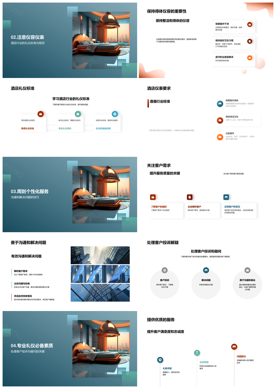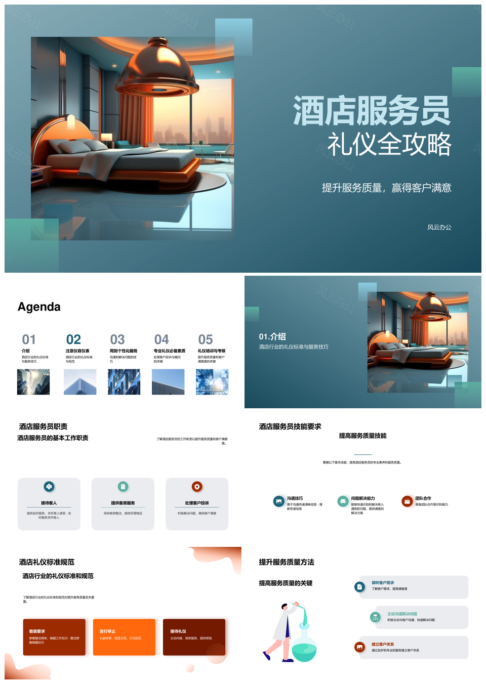 风云办公提供的酒店服务员礼仪规范培训服务质量提升PPT模板,下载格式为pptx,一共25页,作品中文字及图均可以修改和编辑,图片更改请在作品中右键图片并更换,文字修改请直接点击文字进行修改。