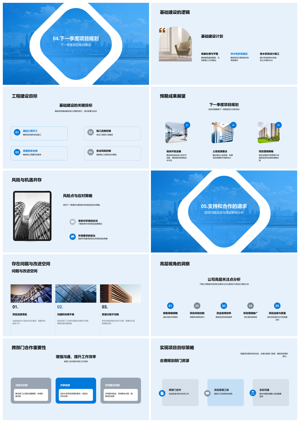 这是一张房地产摩天大楼项目季度成果及下步规划PPT模板,包含房地产、摩天大楼、项目、季度成果、下步规划等主题内容,也可用作房地产项目季度成果、摩天大楼项目季度成果、房地产摩天大楼项目规划、摩天大楼项目下步规划、房地产摩天大楼项目、项目季度成果、项目下步规划、房地产下步规划、摩天大楼下步规划、房地产季度成果、摩天大楼项目规划、房地产项目成果、季度成果、下步规划、房地产规划等PPT场景使用。 风云办公提供的房地产摩天大楼项目季度成果及下步规划PPT模板,下载格式为pptx,一共28页,作品中文字及图均可以修改和编辑,图片更改请在作品中右键图片并更换,文字修改请直接点击文字进行修改。