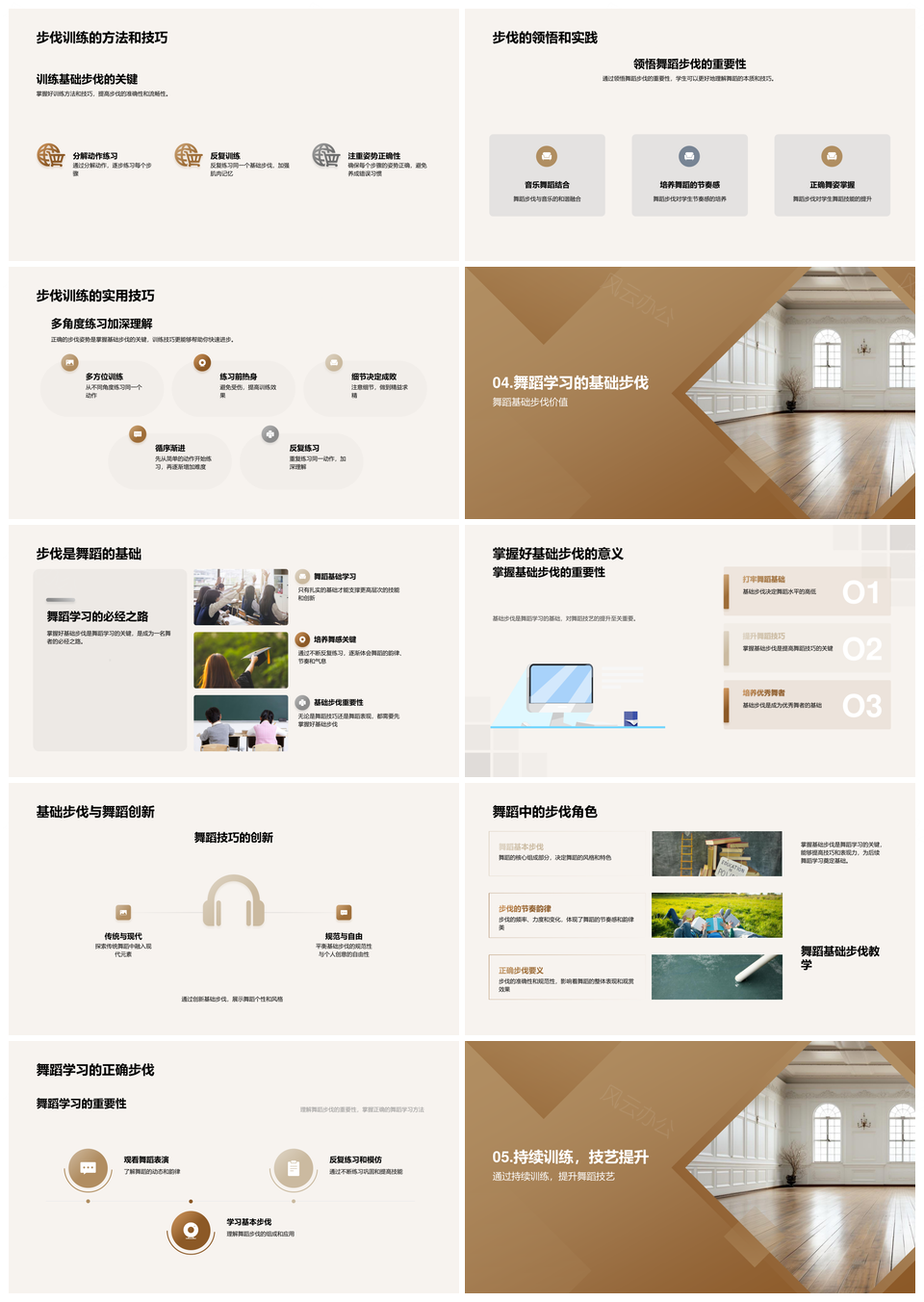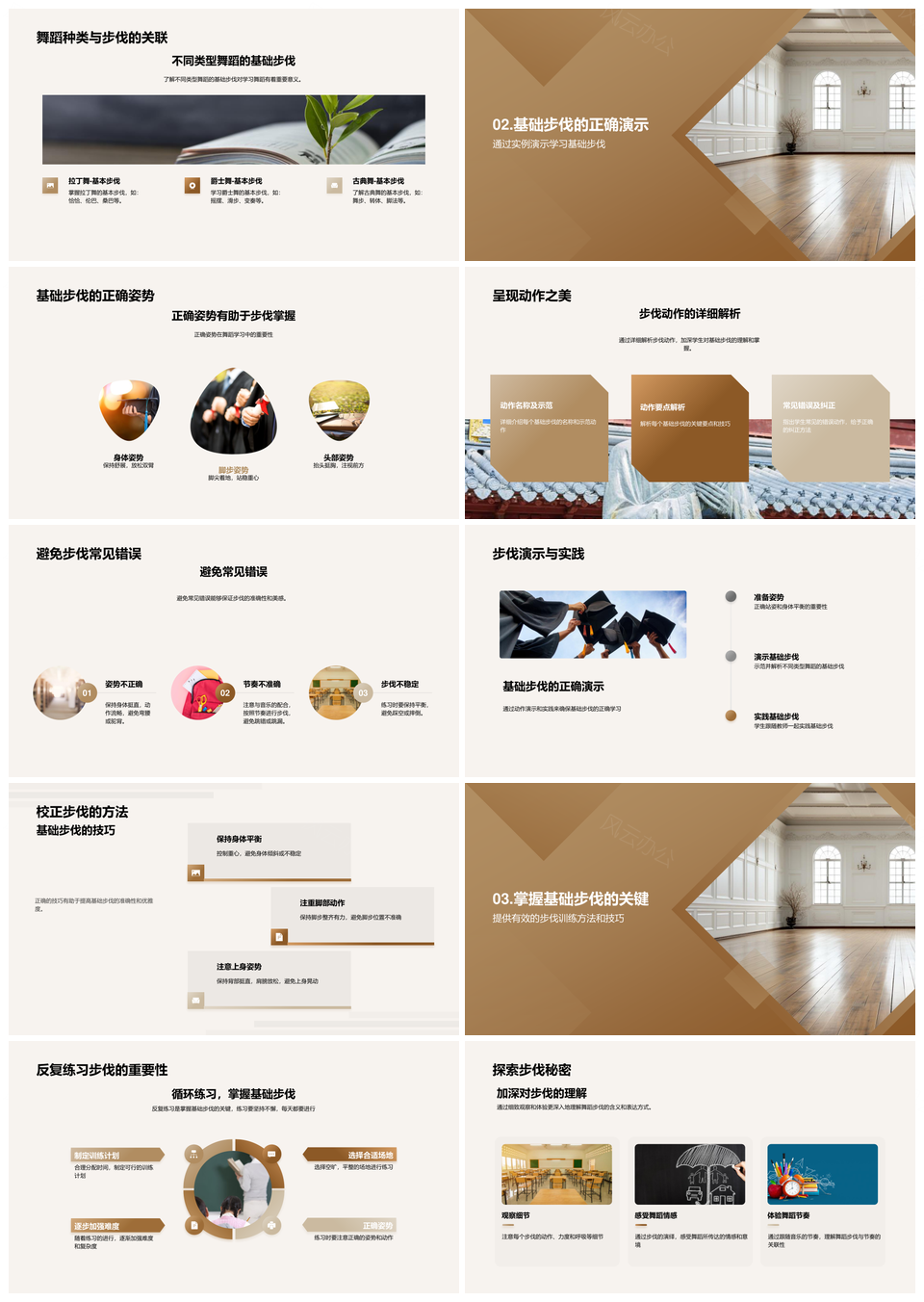 风云办公提供的舞蹈基础步伐舞种解析与训练技巧纠错PPT模板,下载格式为pptx,一共33页,作品中文字及图均可以修改和编辑,图片更改请在作品中右键图片并更换,文字修改请直接点击文字进行修改。
