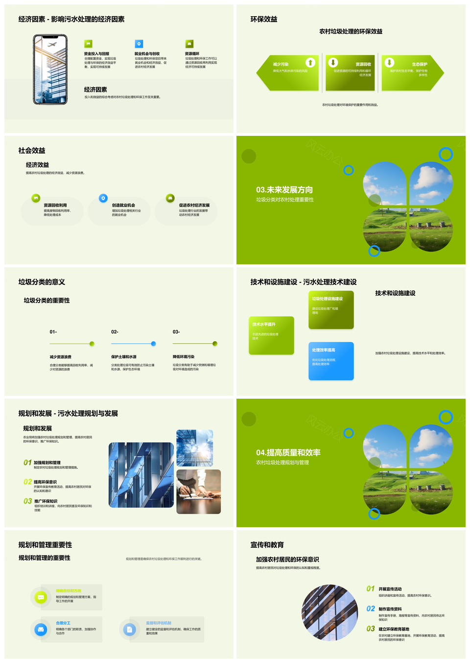 这是一张农村垃圾分类处理与环保设施建设PPT模板,包含农村、垃圾分类处理、环保设施建设等主题内容,也可用作农村垃圾分类处理、垃圾分类处理环保设施、环保设施建设、农村垃圾分类、垃圾分类处理、农村垃圾处理、垃圾分类环保、环保设施处理、处理环保设施、农村环保设施、设施建设环保、分类处理环保、处理设施建设、垃圾处理环保、垃圾分类设施等PPT场景使用。