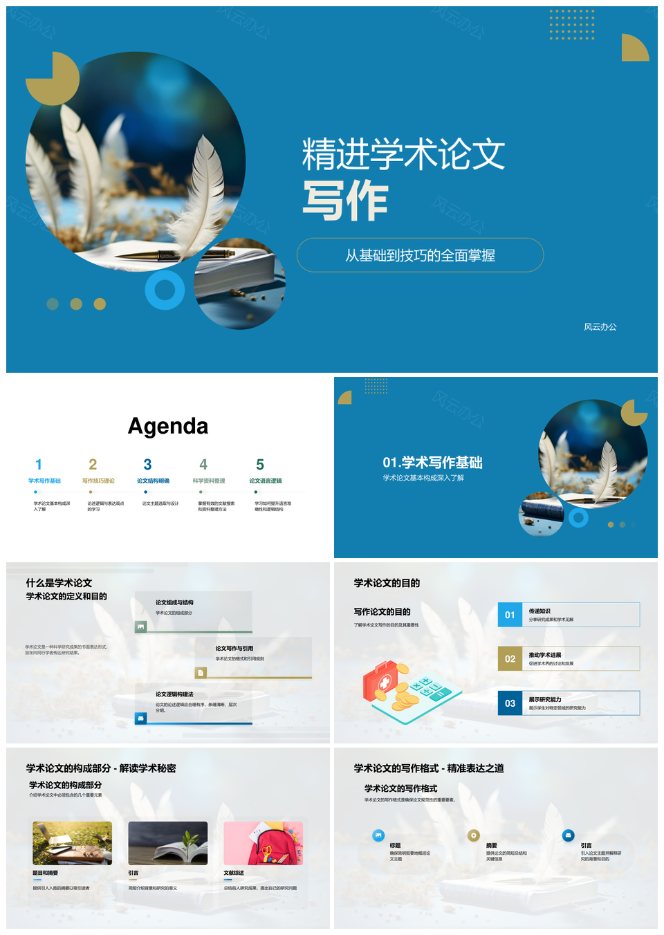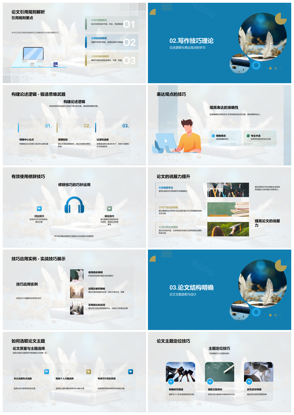风云办公提供的学术论文写作技巧与结构精进PPT模板,下载格式为pptx,一共33页,作品中文字及图均可以修改和编辑,图片更改请在作品中右键图片并更换,文字修改请直接点击文字进行修改。