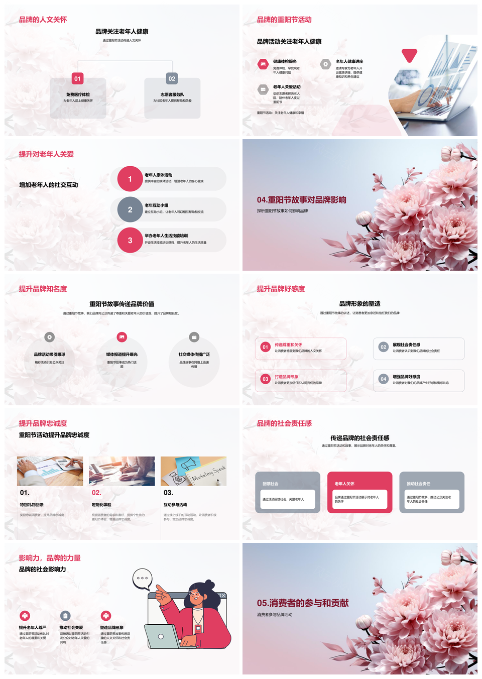 这是一张品牌重阳敬老传承文化彰显责任担当PPT模板,包含品牌、重阳、敬老、传承、文化、彰显、责任、担当等主题内容,也可用作品牌重阳敬老传承文化、敬老彰显责任担当、品牌彰显责任担当、传承文化彰显责任、彰显责任担当、重阳敬老传承、敬老传承文化、品牌传承文化、敬老彰显责任、品牌责任担当、重阳敬老、传承文化、彰显责任、责任担当、品牌传承等PPT场景使用。