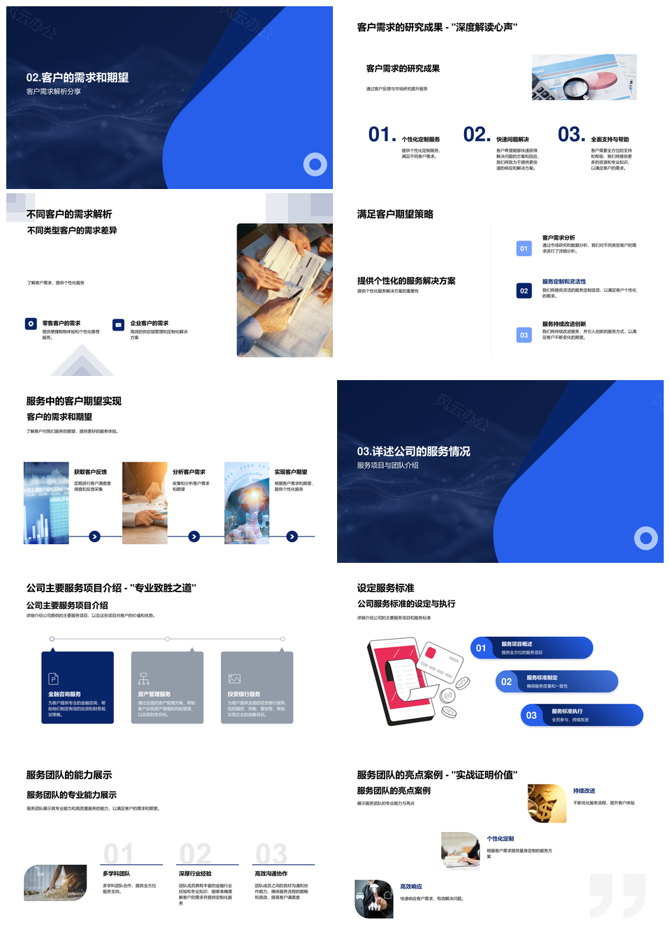 这是一张金融客户服务质量年度报告满意升级计划PPT模板,包含金融、客户、服务质量、年度、报告、满意、升级、计划等主题内容,也可用作金融客户服务质量年度报告、客户服务质量年度报告满意、服务质量年度报告满意升级、质量年度报告满意升级计划、金融客户服务质量年度、客户服务质量年度报告、服务质量年度报告满意、质量年度报告满意升级、年度报告满意升级计划、客户服务质量年度、服务质量年度报告、质量年度报告满意、年度报告满意升级、报告满意升级计划、满意升级计划等PPT场景使用。 风云办公提供的金融客户服务质量年度报告满意升级计划PPT模板,下载格式为pptx,一共33页,作品中文字及图均可以修改和编辑,图片更改请在作品中右键图片并更换,文字修改请直接点击文字进行修改。