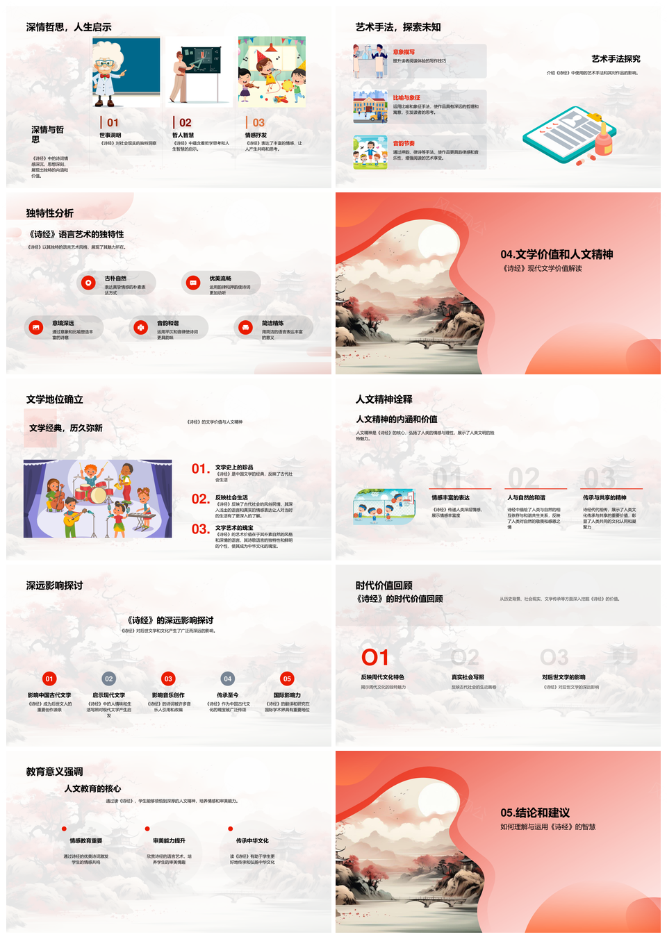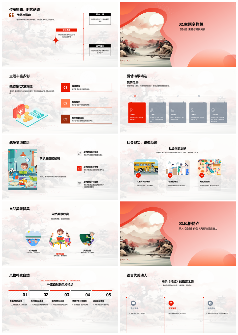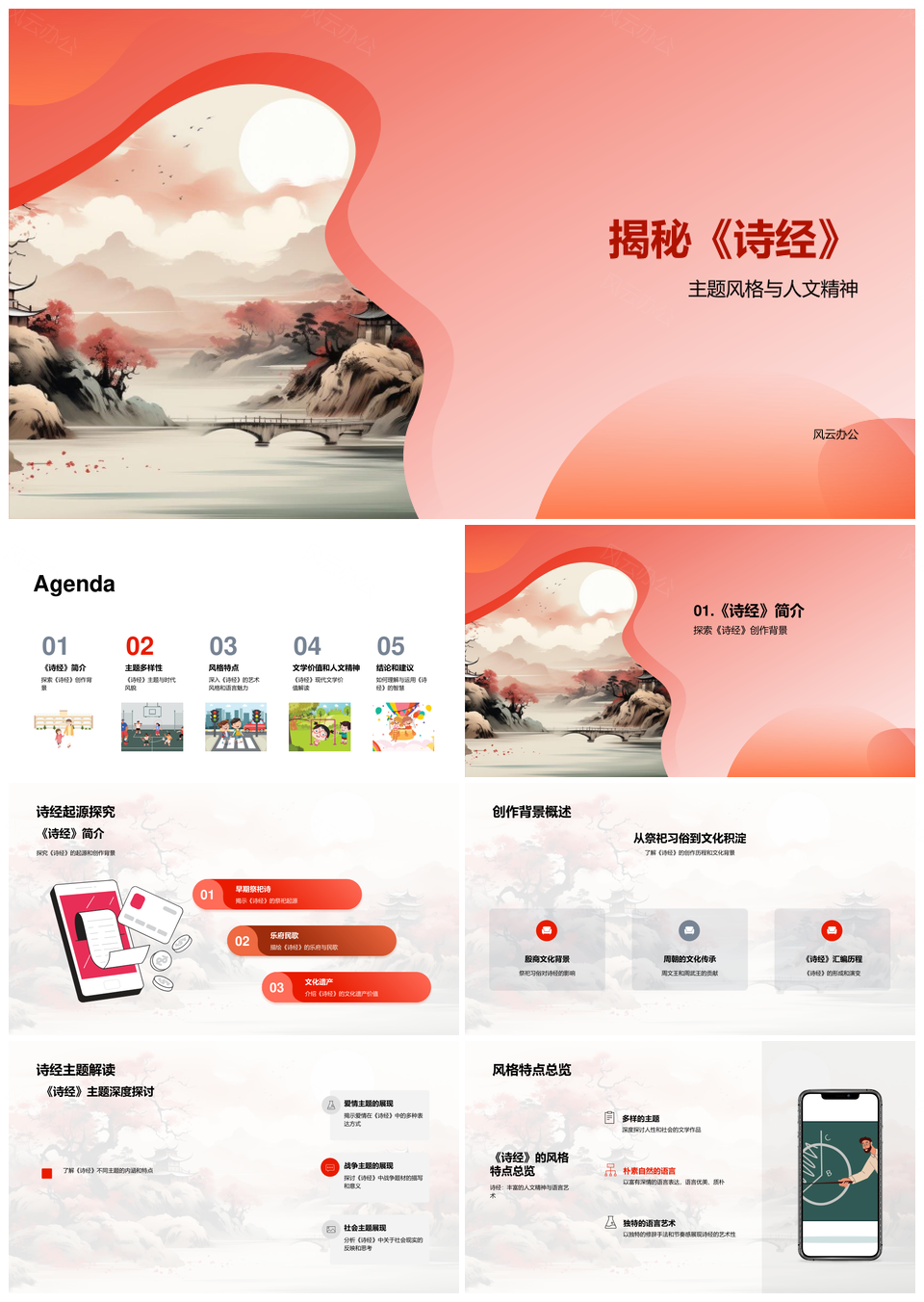 风云办公提供的诗经多元主题人文语言艺术探源PPT模板,下载格式为pptx,一共33页,作品中文字及图均可以修改和编辑,图片更改请在作品中右键图片并更换,文字修改请直接点击文字进行修改。