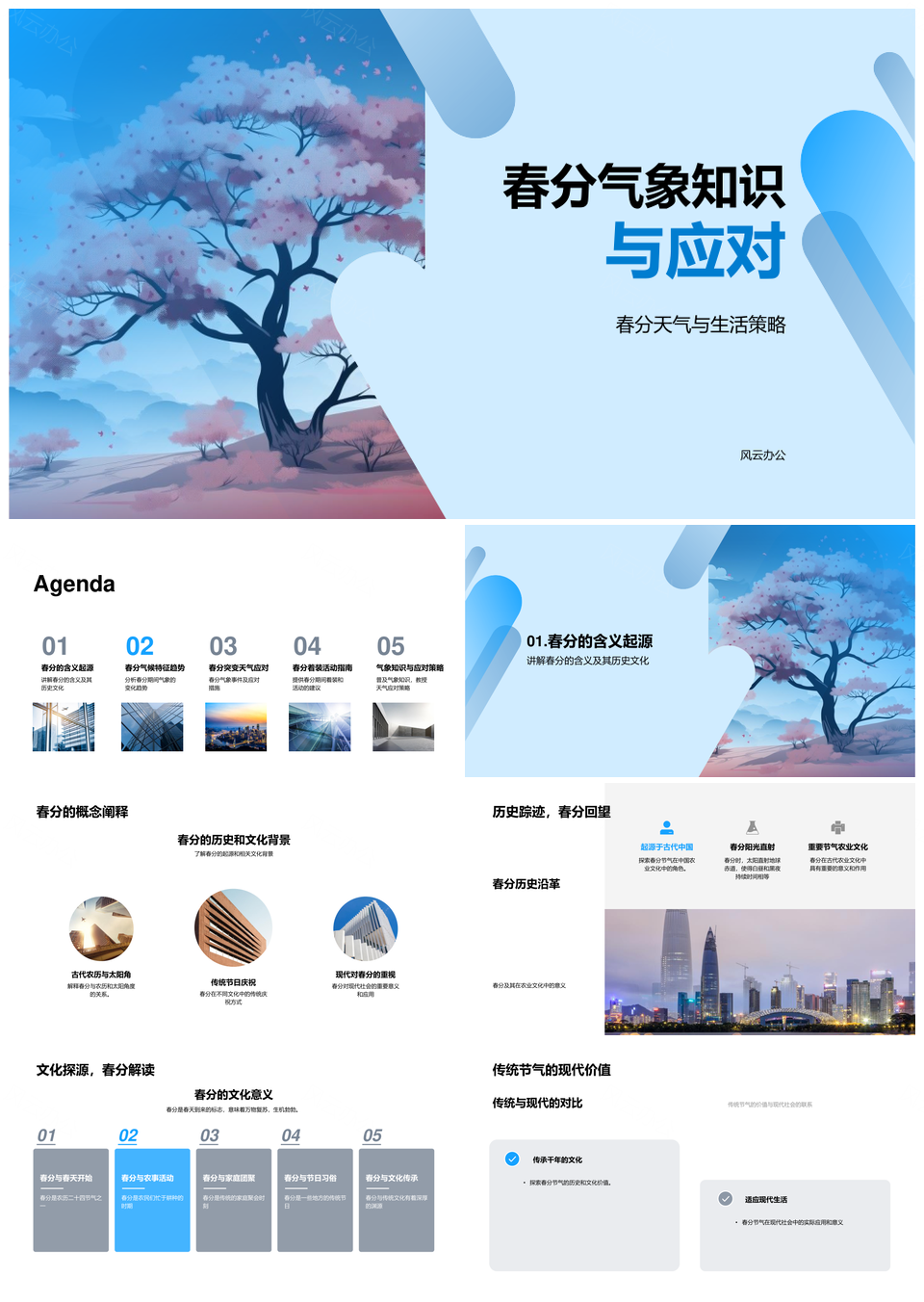 风云办公提供的春分气候樱花气象知识应对策略PPT模板,下载格式为pptx,一共33页,作品中文字及图均可以修改和编辑,图片更改请在作品中右键图片并更换,文字修改请直接点击文字进行修改。