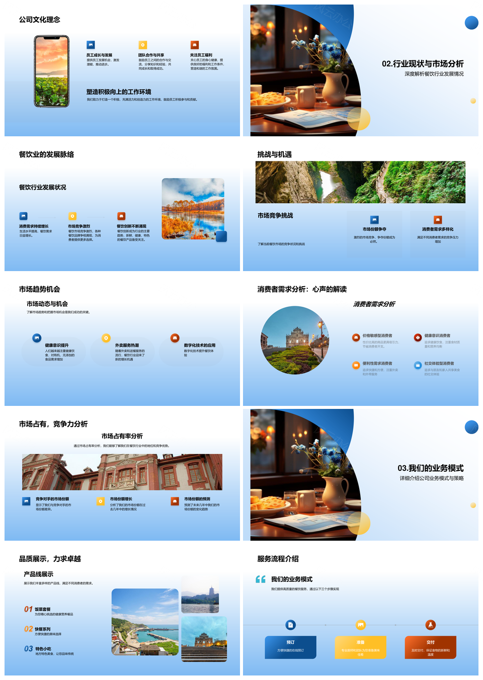 这是一张餐饮版图竞赛路演财务策略商业计划展望PPT模板,包含餐饮、版图、竞赛、路演、财务策略、商业计划、展望等主题内容,也可用作餐饮版图竞赛路演、商业计划展望财务策略、财务策略商业计划展望、餐饮版图路演财务策略、竞赛路演财务策略商业、策略商业计划展望、餐饮版图财务策略、竞赛路演商业计划、财务策略商业计划、商业计划展望、餐饮版图竞赛、路演财务策略、财务策略商业、商业计划展望、餐饮版图等PPT场景使用。 风云办公提供的餐饮版图竞赛路演财务策略商业计划展望PPT模板,下载格式为pptx,一共33页,作品中文字及图均可以修改和编辑,图片更改请在作品中右键图片并更换,文字修改请直接点击文字进行修改。