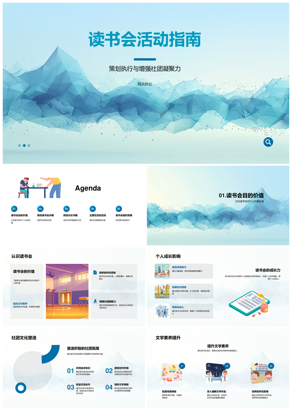 风云办公提供的读书会策划凝聚社团文学思辨主题活动PPT模板,下载格式为pptx,一共33页,作品中文字及图均可以修改和编辑,图片更改请在作品中右键图片并更换,文字修改请直接点击文字进行修改。
