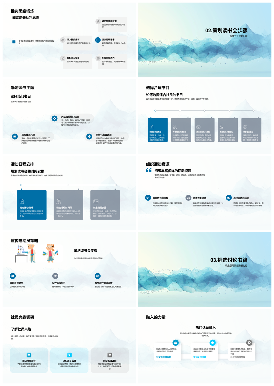 这是一张读书会策划凝聚社团文学思辨主题活动PPT模板,包含读书会、策划、凝聚、社团、文学、思辨、主题活动等主题内容,也可用作读书会策划凝聚社团、读书会策划凝聚文学、读书会策划社团文学、策划凝聚社团文学、凝聚社团文学思辨、社团文学思辨主题、文学思辨主题活动、读书会策划凝聚、策划凝聚社团、凝聚社团文学、社团文学思辨、文学思辨主题、思辨主题活动、读书会策划、凝聚社团、文学思辨等PPT场景使用。