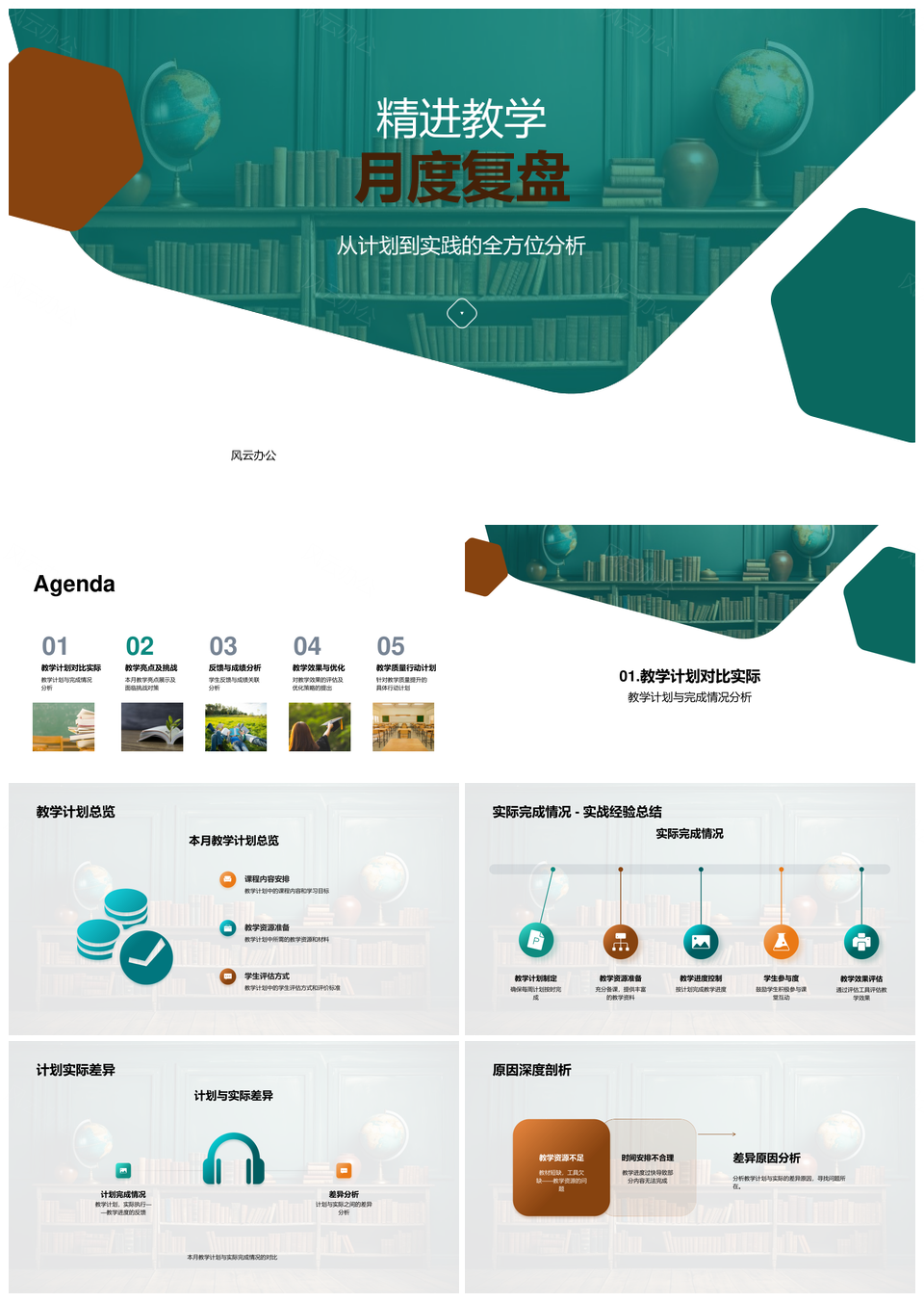 精进教学月度复盘计划实绩差异亮点挑战策略反馈PPT模板推荐