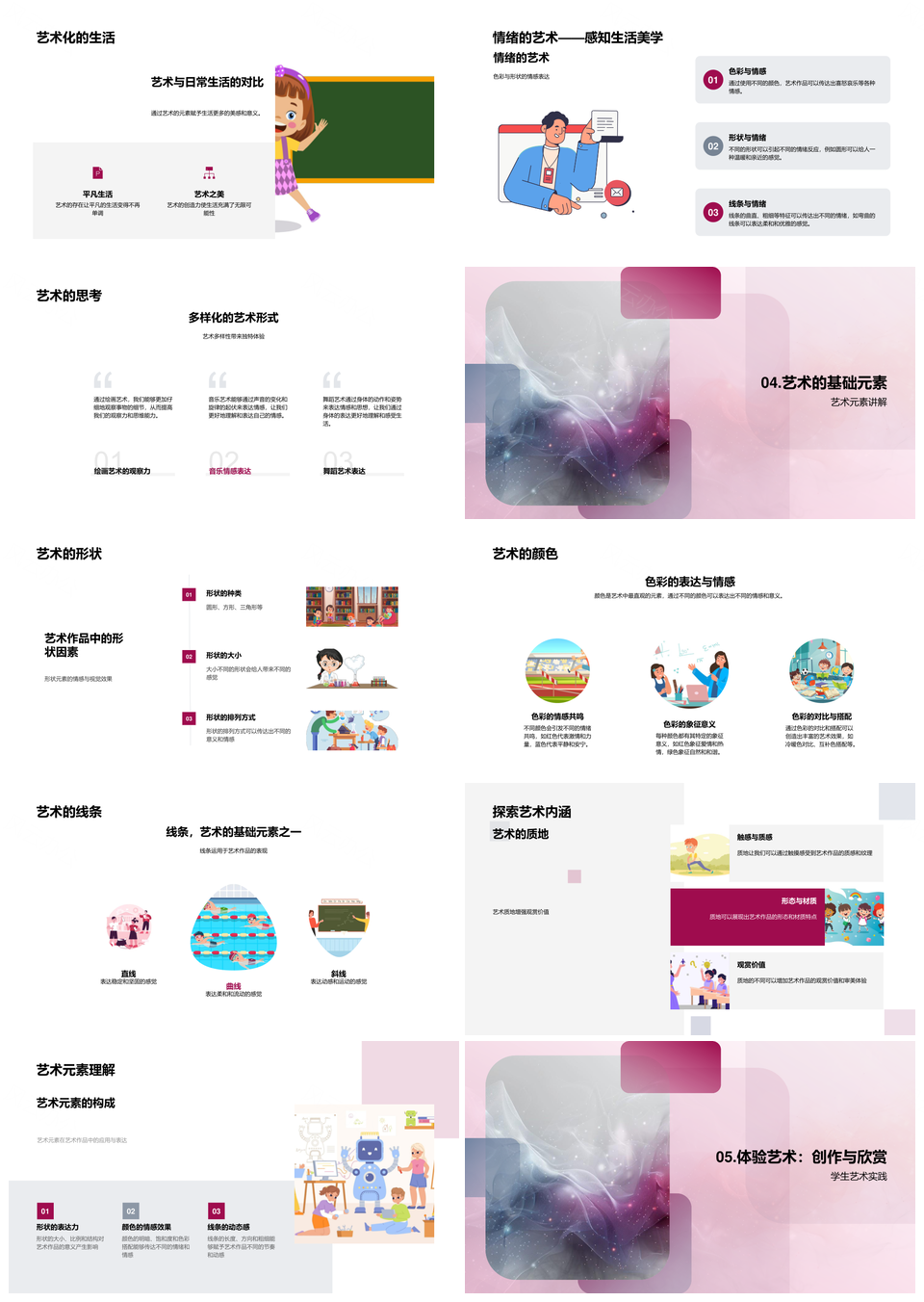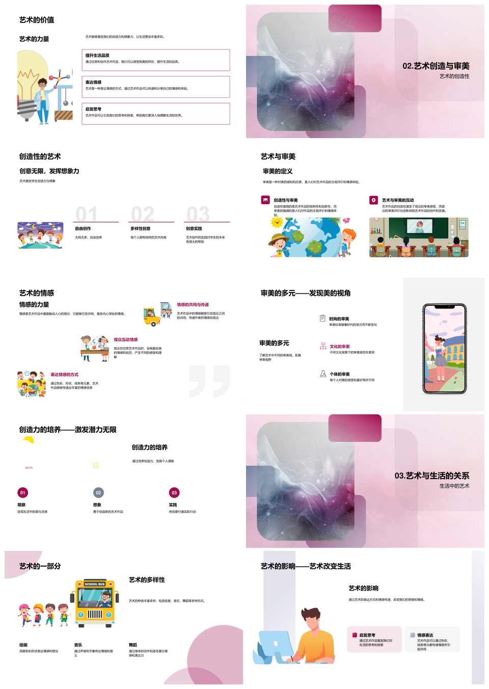 艺术与生活定义分类创造性审美影响元素PPT模板推荐