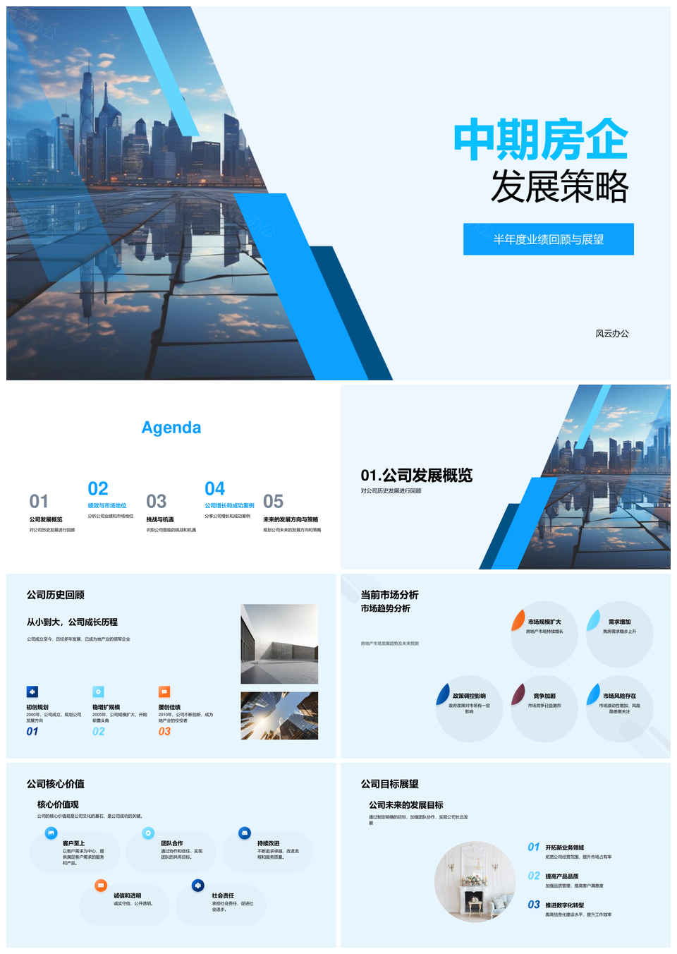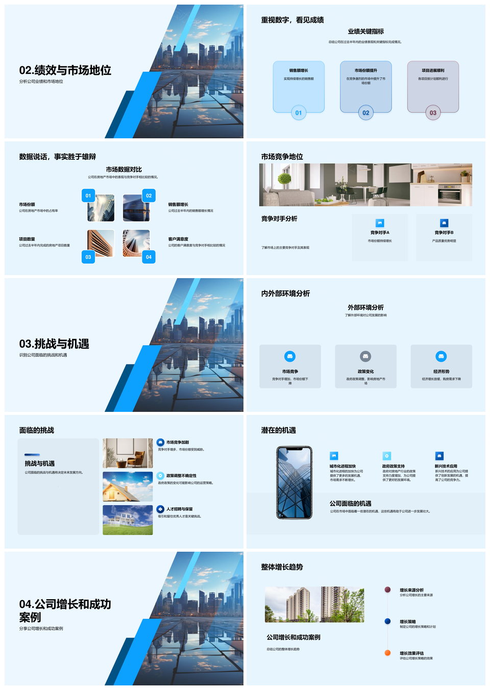 房企中期策略市场环境分析竞争地位业绩指标摩天大楼PPT模板